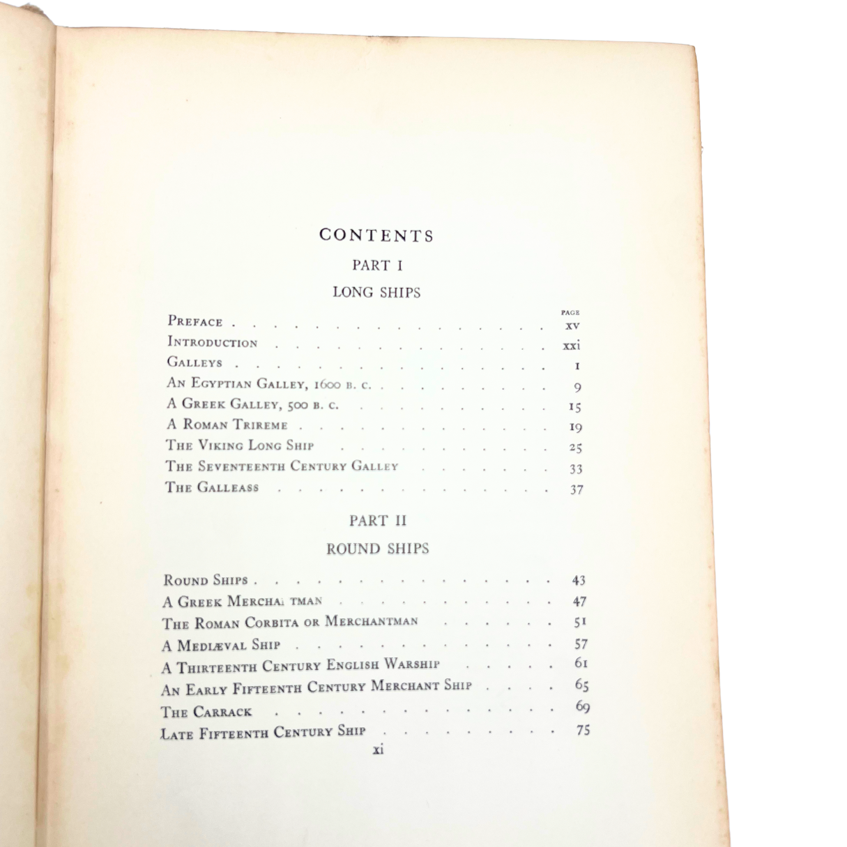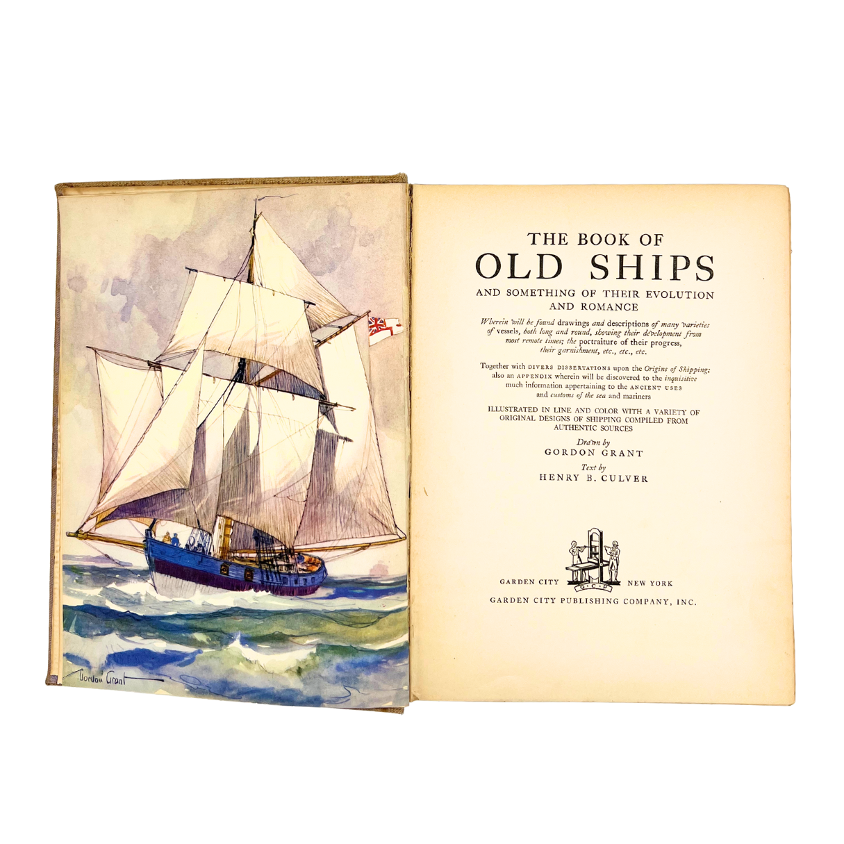 The Book of Old Ships by Henry B. Culver and Gordon Grant. Lovely antique book from 1924. Wear consistent with age - fabric cover has some discoloration and fraying but pages are intact. Approximately 11.25" x 8.5".