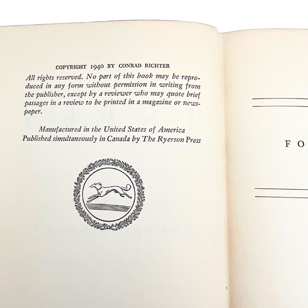 The Trees by Conrad Richter. First edition published in 1940. Wear consistent with age. Charming fabric covered with wave pattern (no jacket). Measures 8" x 5.75".