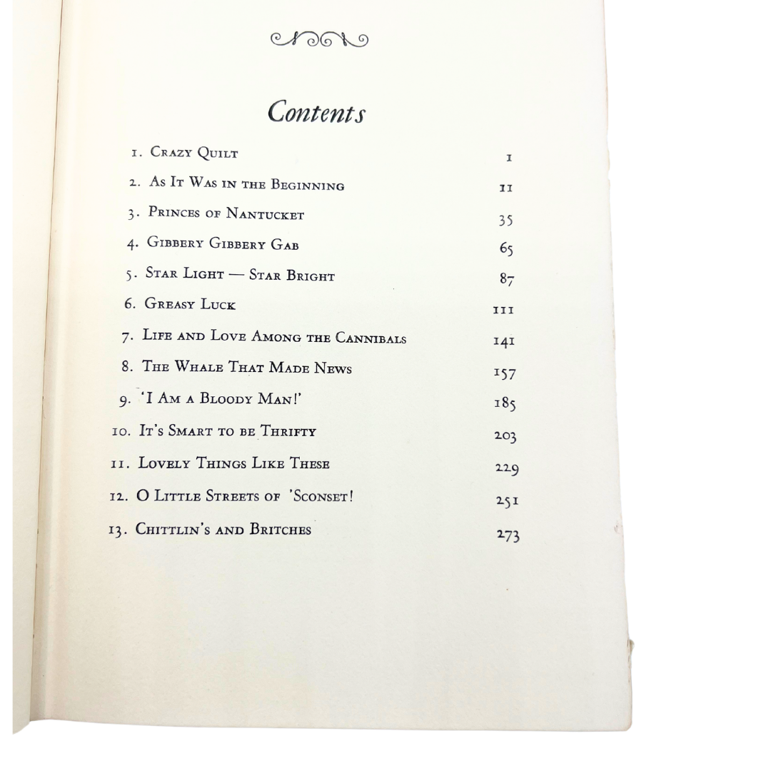 An Island Patchwork by Eleanor Early. A collection of stories/history of Nantucket. Published in 1941. Covers are slightly askew - see photos. No jacket. Lovely linen fabric on cover. Good conditions for its age. Measures 8.25" x 5.75".