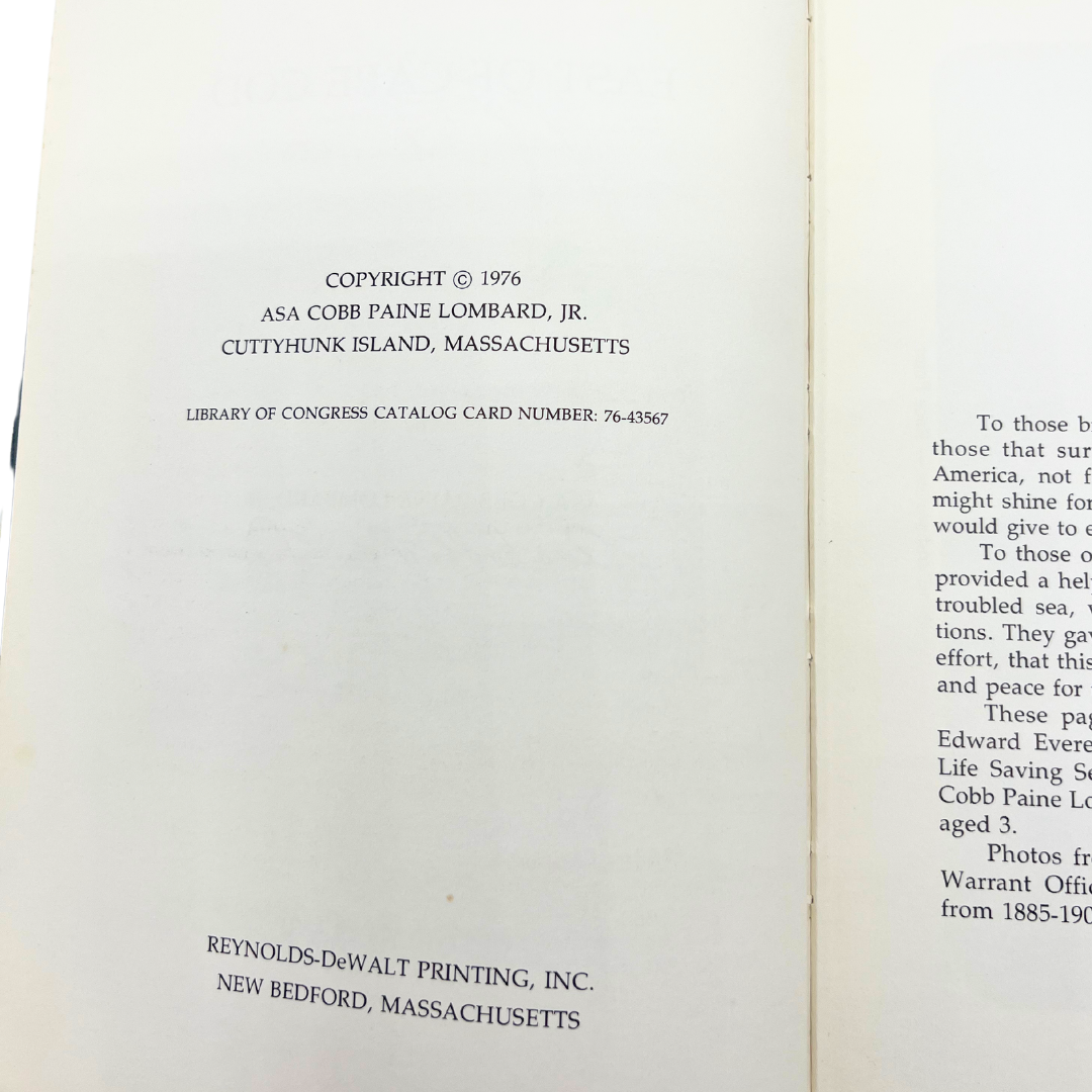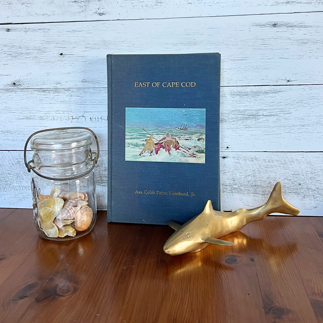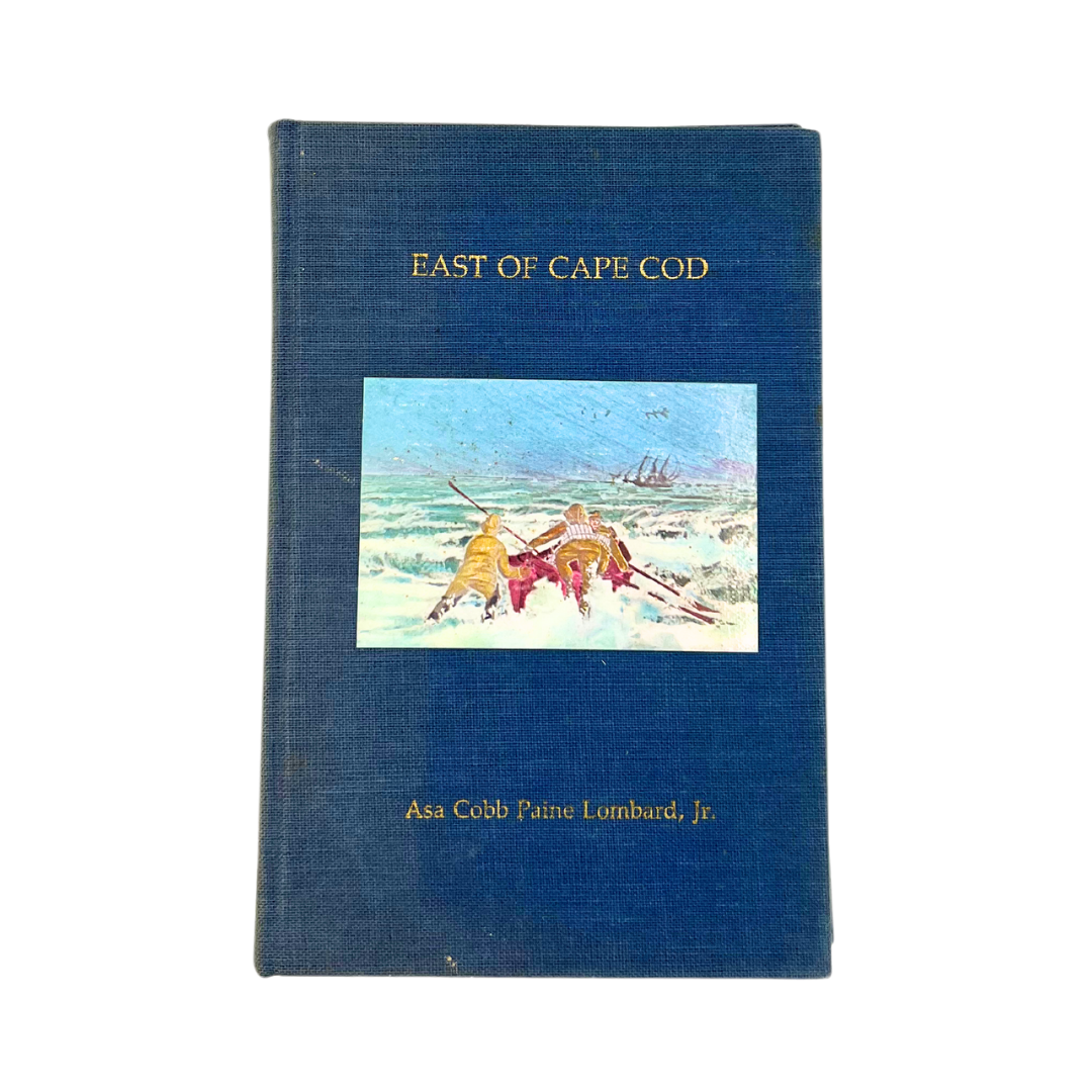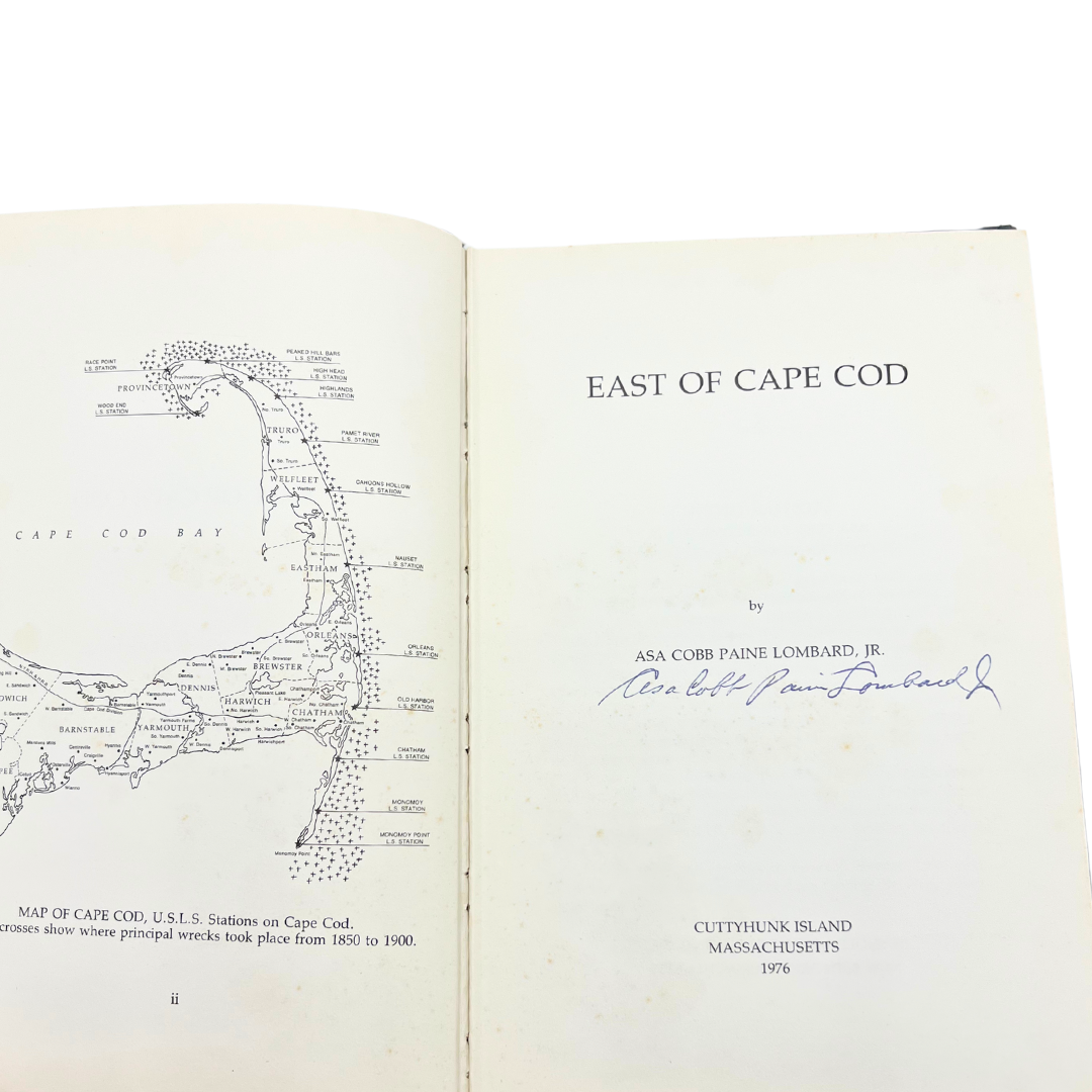 East of Cape Cod by Asa Cobb Paine Lombard, Jr. Published in 1976. Signed copy. Name tag inside cover adds extra character. No jacket. Fabric cover with gilded lettering and a color picture. Fabric is faded along spine - see photos. Measures 9.25" x 6.25".
