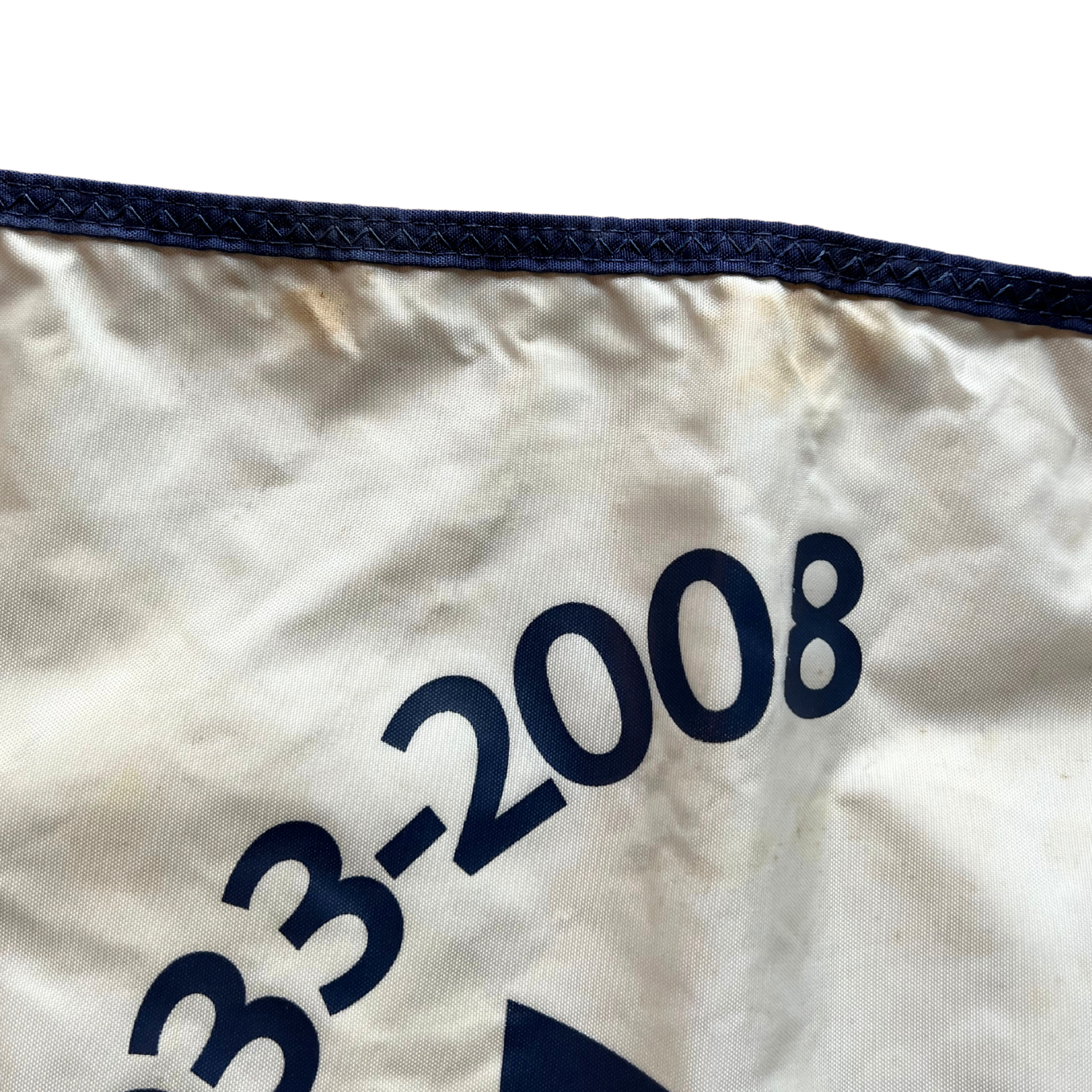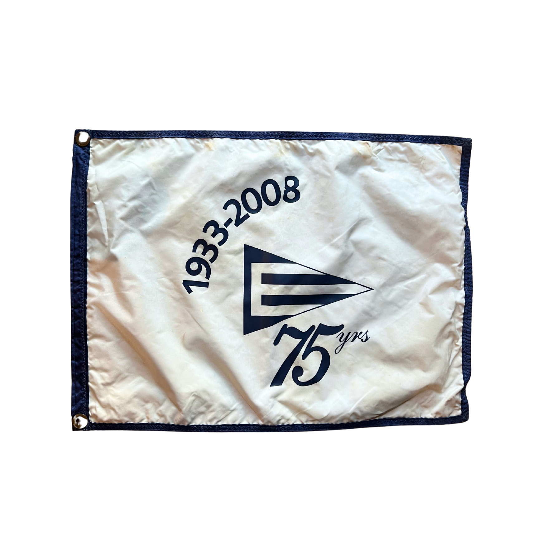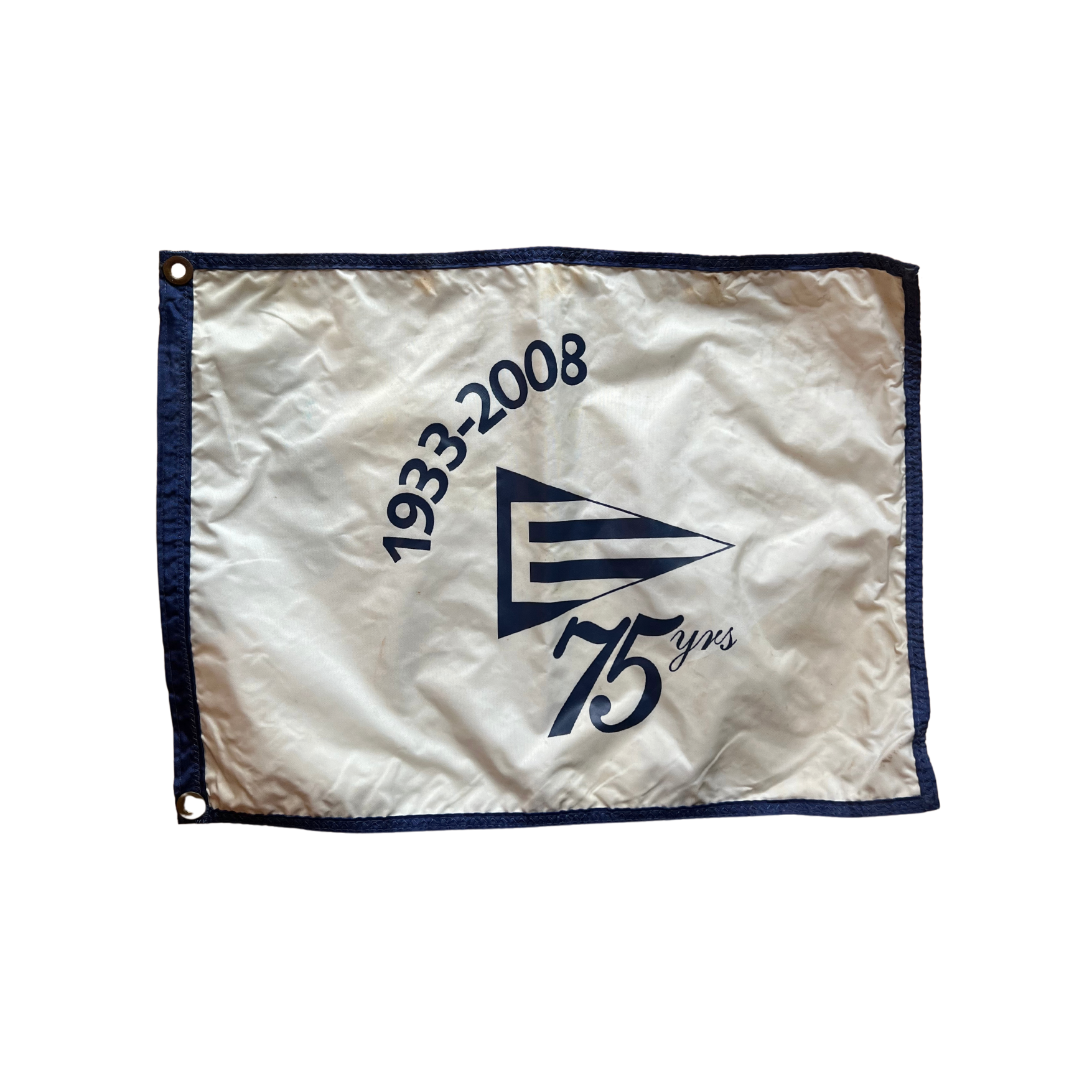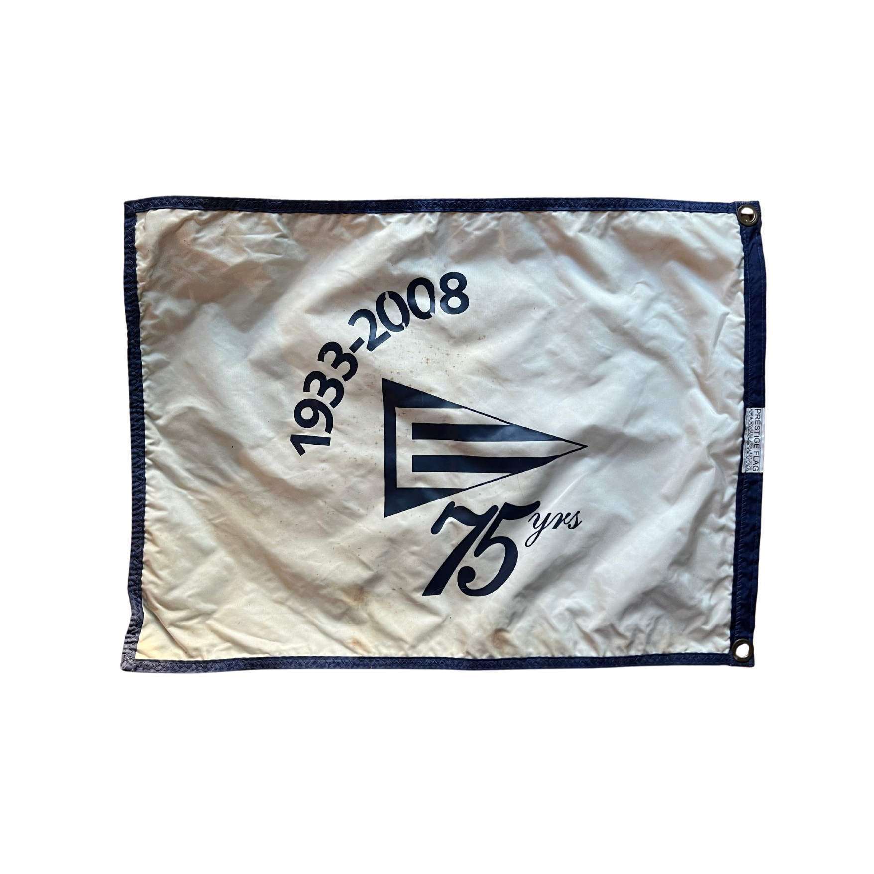Burgee commemorating the 75th anniversary of the Essex Yacht Club in Connecticut. Thick material. Some wear/spots due to age. Approximately 24.5" x 18".