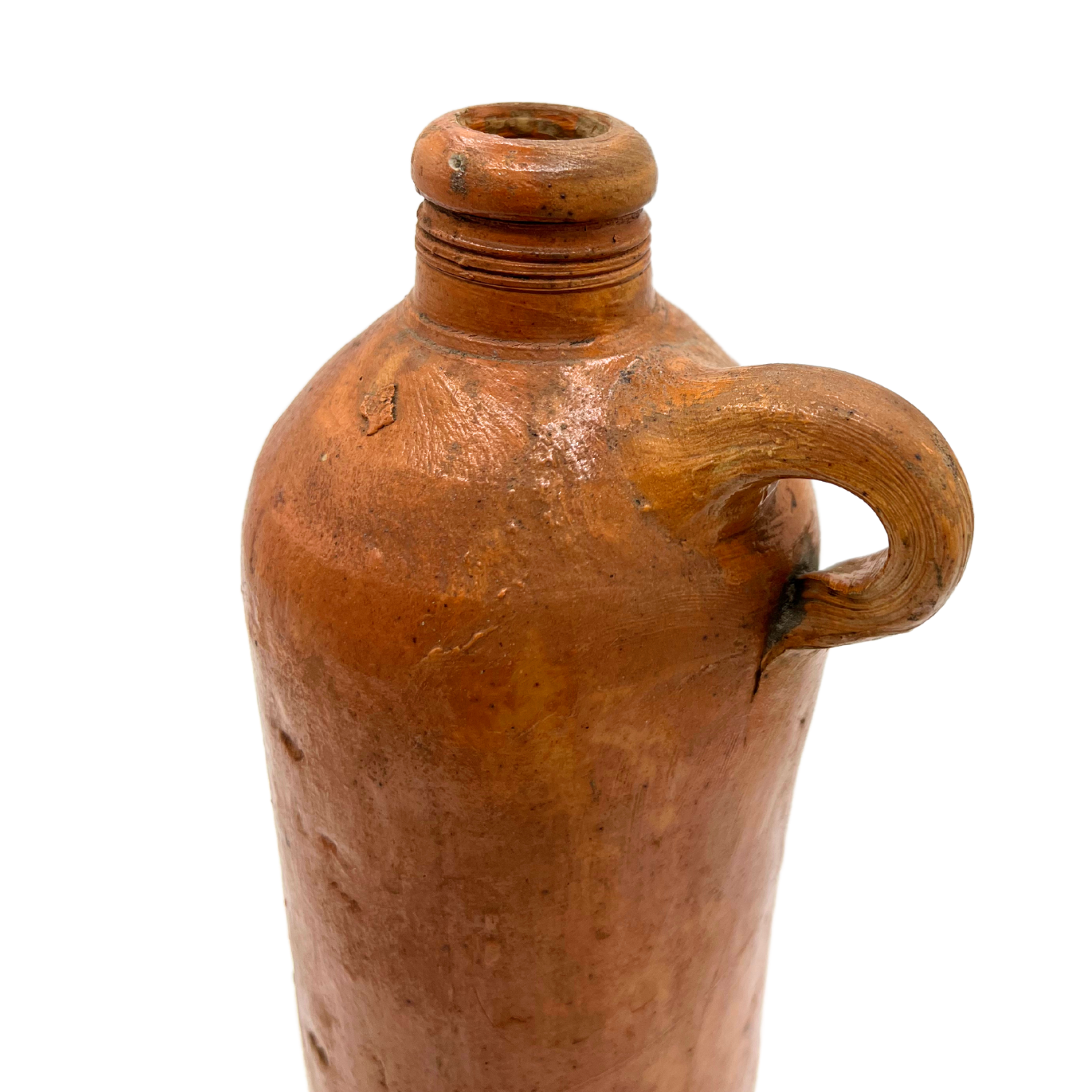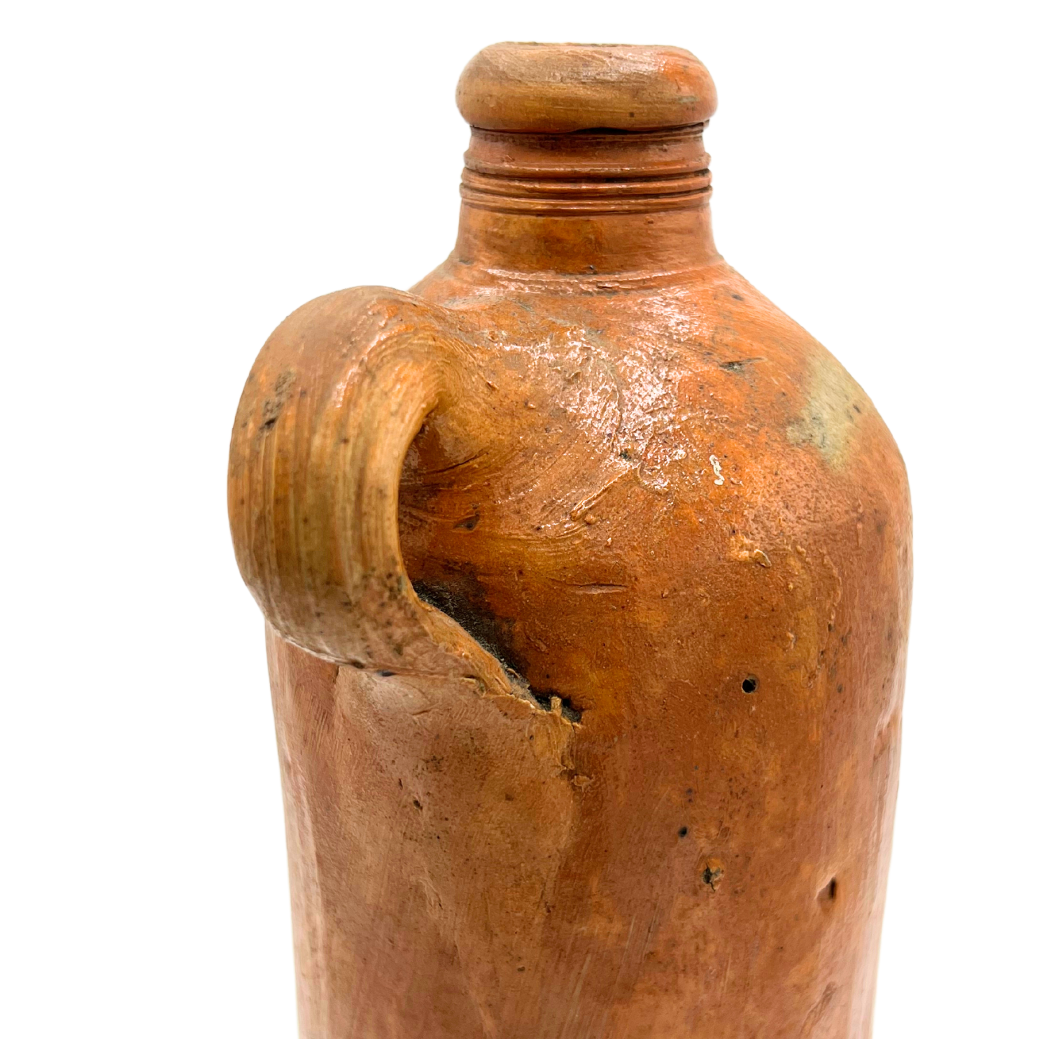 Antique European stoneware bottle for carrying mineral water. Lovely handmade details. Stands 11.5" tall.