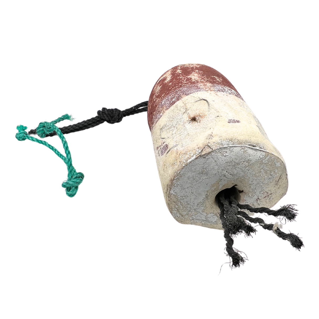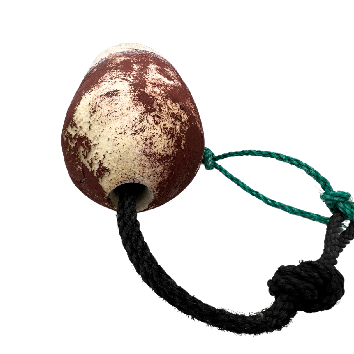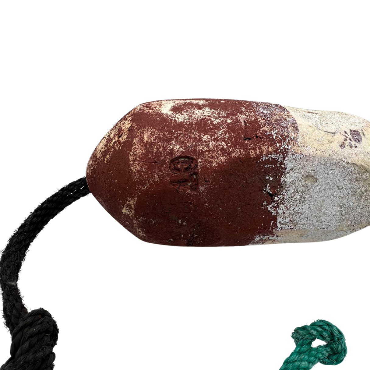 Authentic salvaged lobster buoy from the New England coastline. Perfectly weathered with rope attached. Buoy is approximately 12" not including rope.