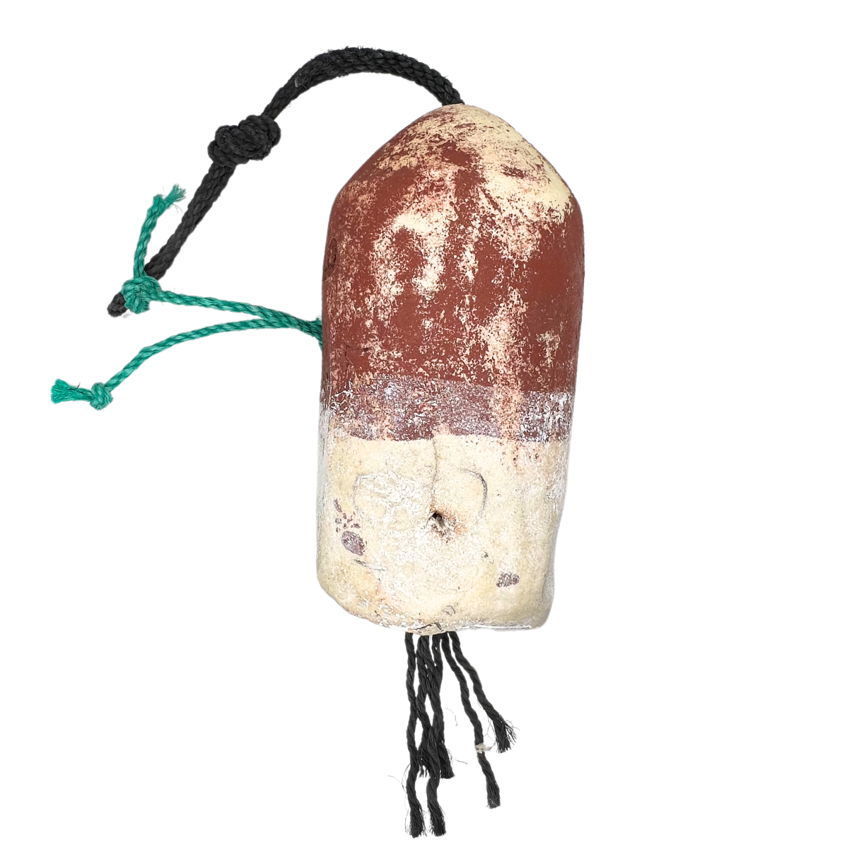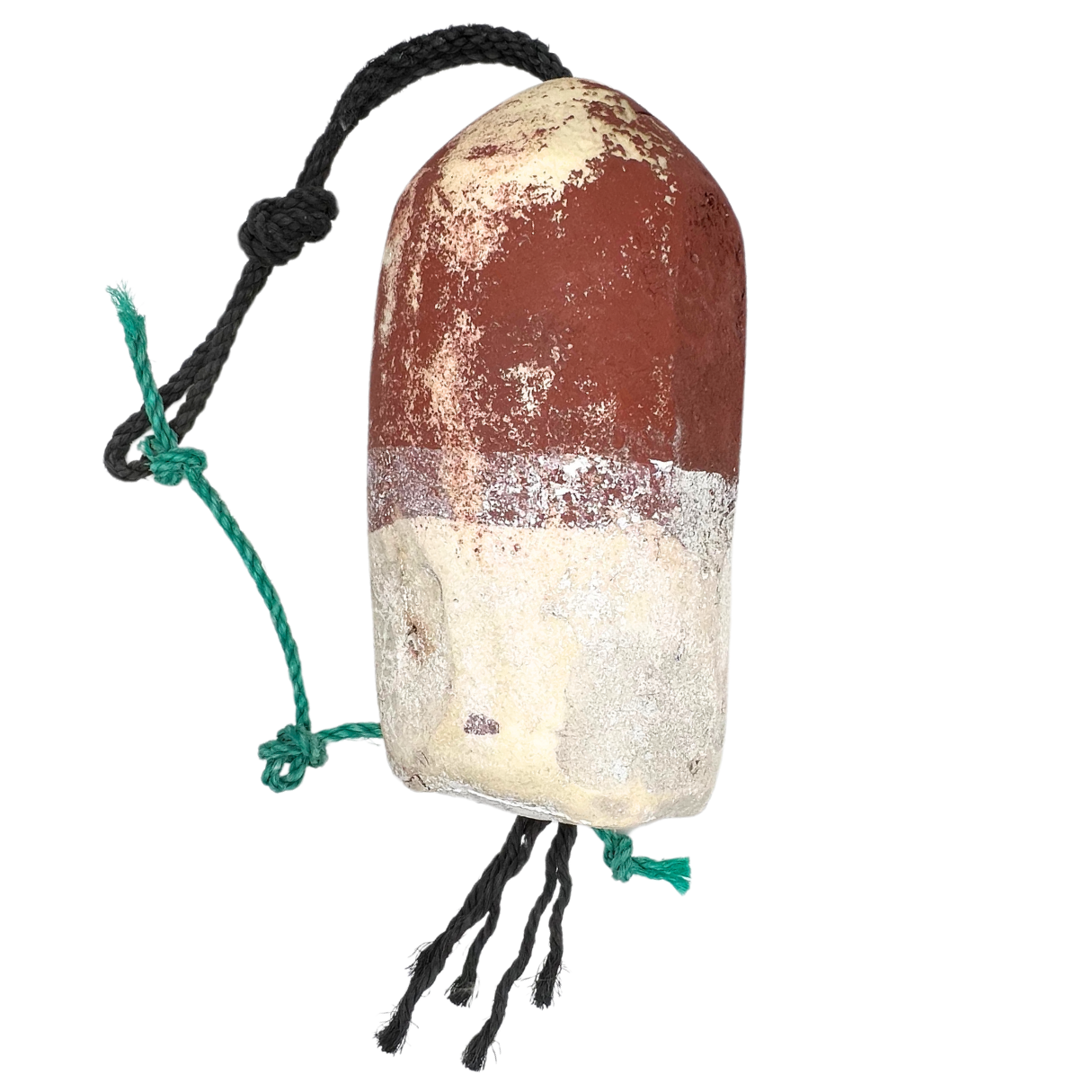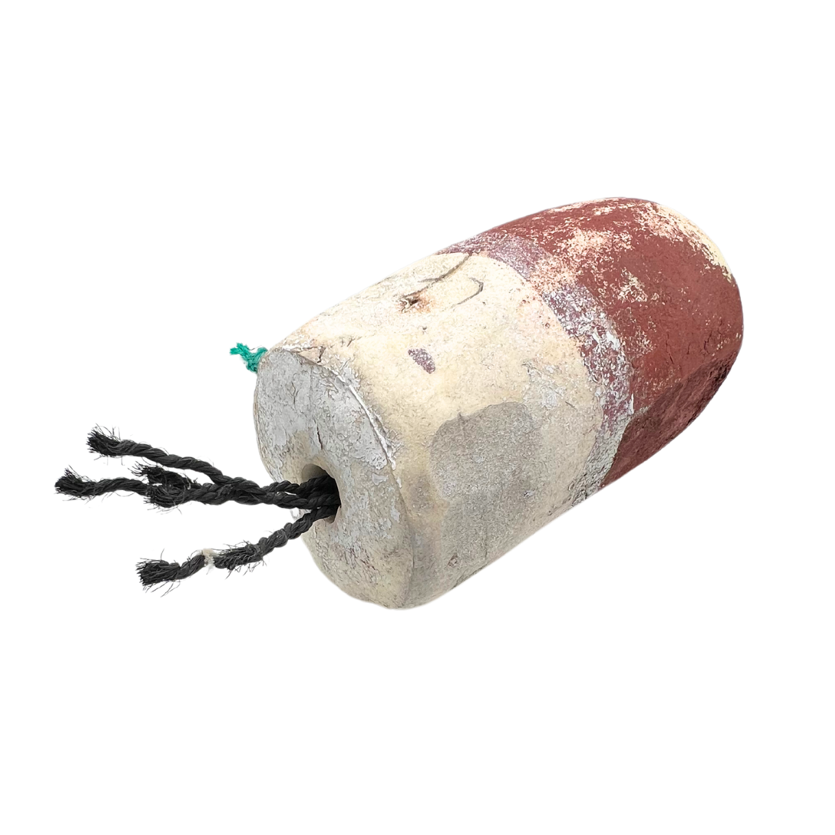 Authentic salvaged lobster buoy from the New England coastline. Perfectly weathered with rope attached. Buoy is approximately 12" not including rope.