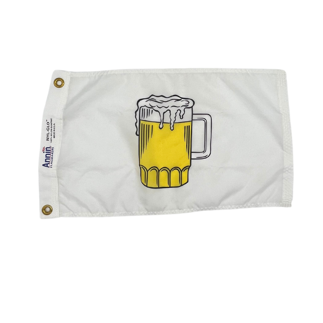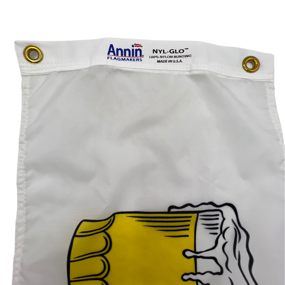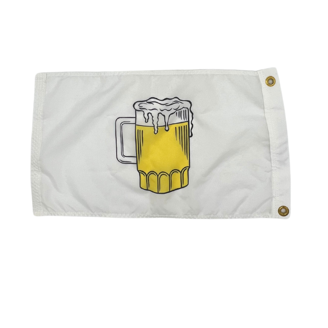 Fun beer flag sized for a boat. Unused condition. Age unknown. Approximately 12" x 18".