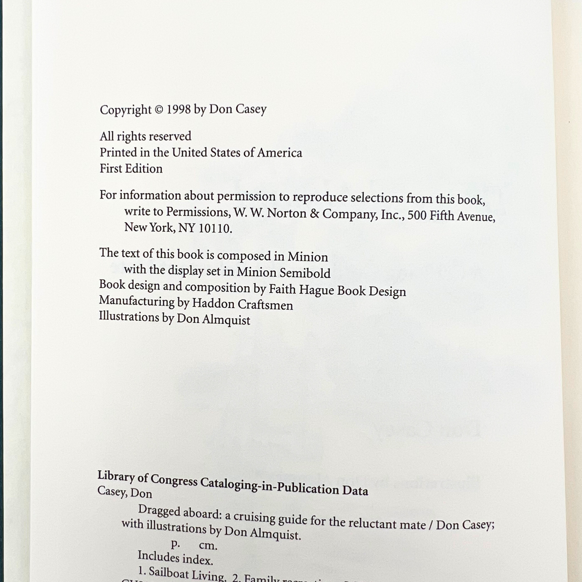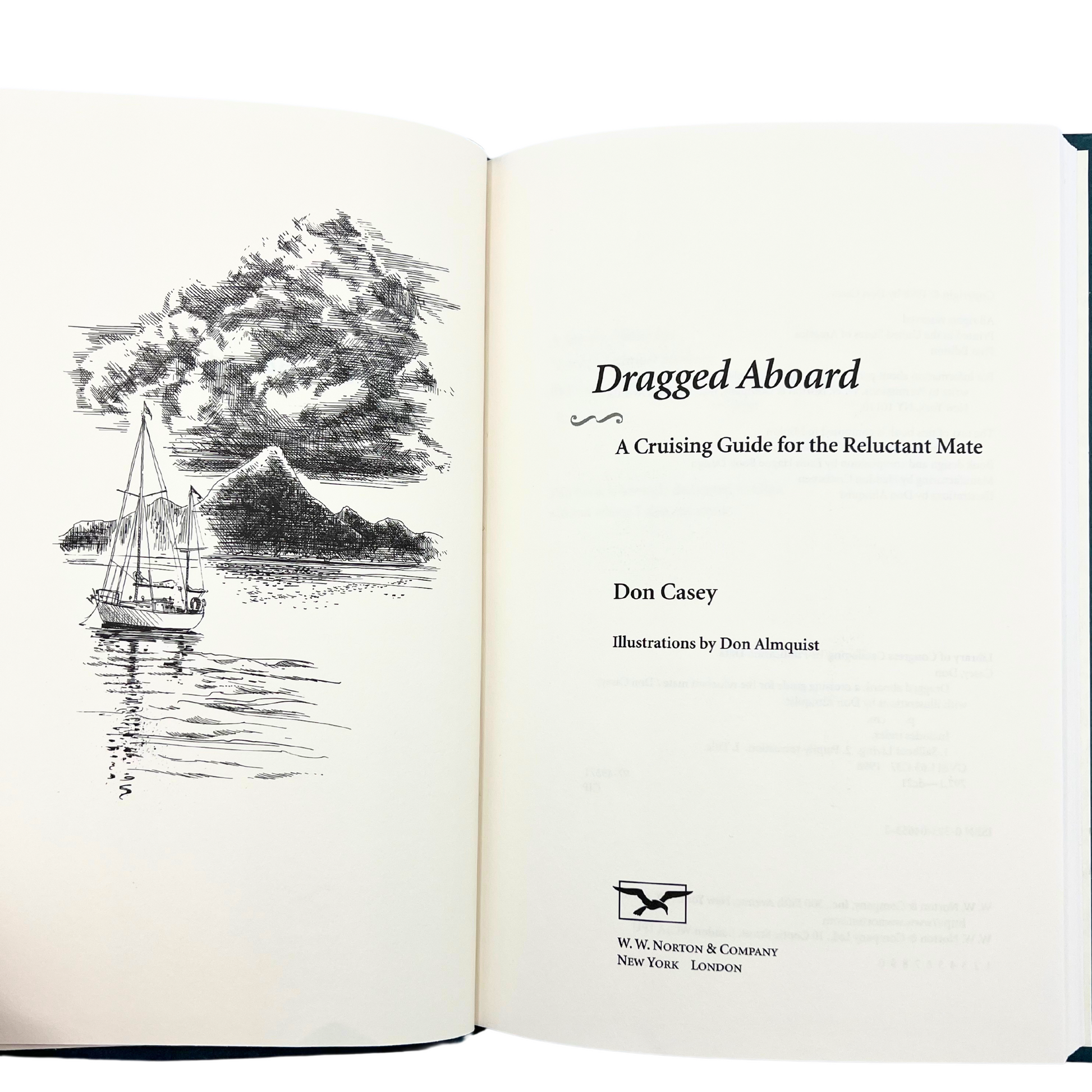 Dragged Aboard: A Cruising Guide for the Reluctant Mate by Don Casey. Published in 1998. Fun book for the inexperienced sailing companion. Some wear consistent with age - marks on cover, missing jacket. 9.5" x 6.5".