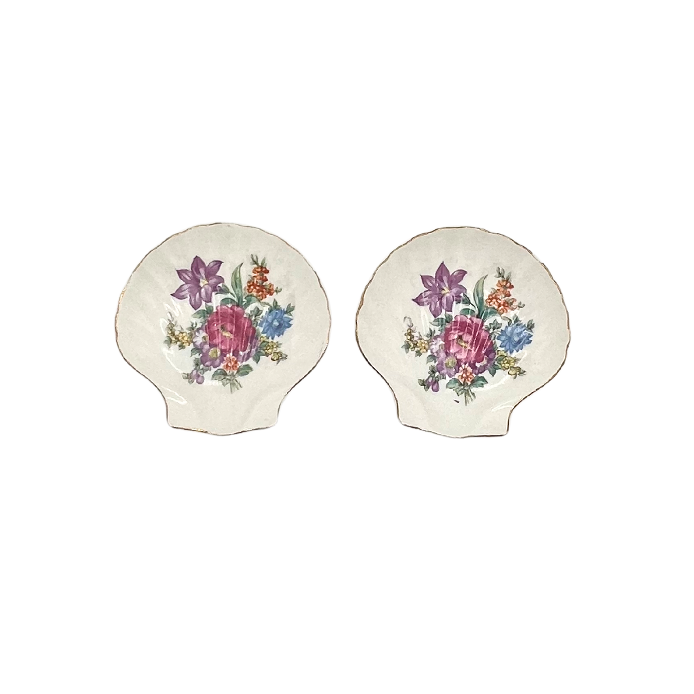 Pair of vintage bone china scallop dishes. Matching floral patterns. Made in Japan. Each shell measures 4.5" x 4".