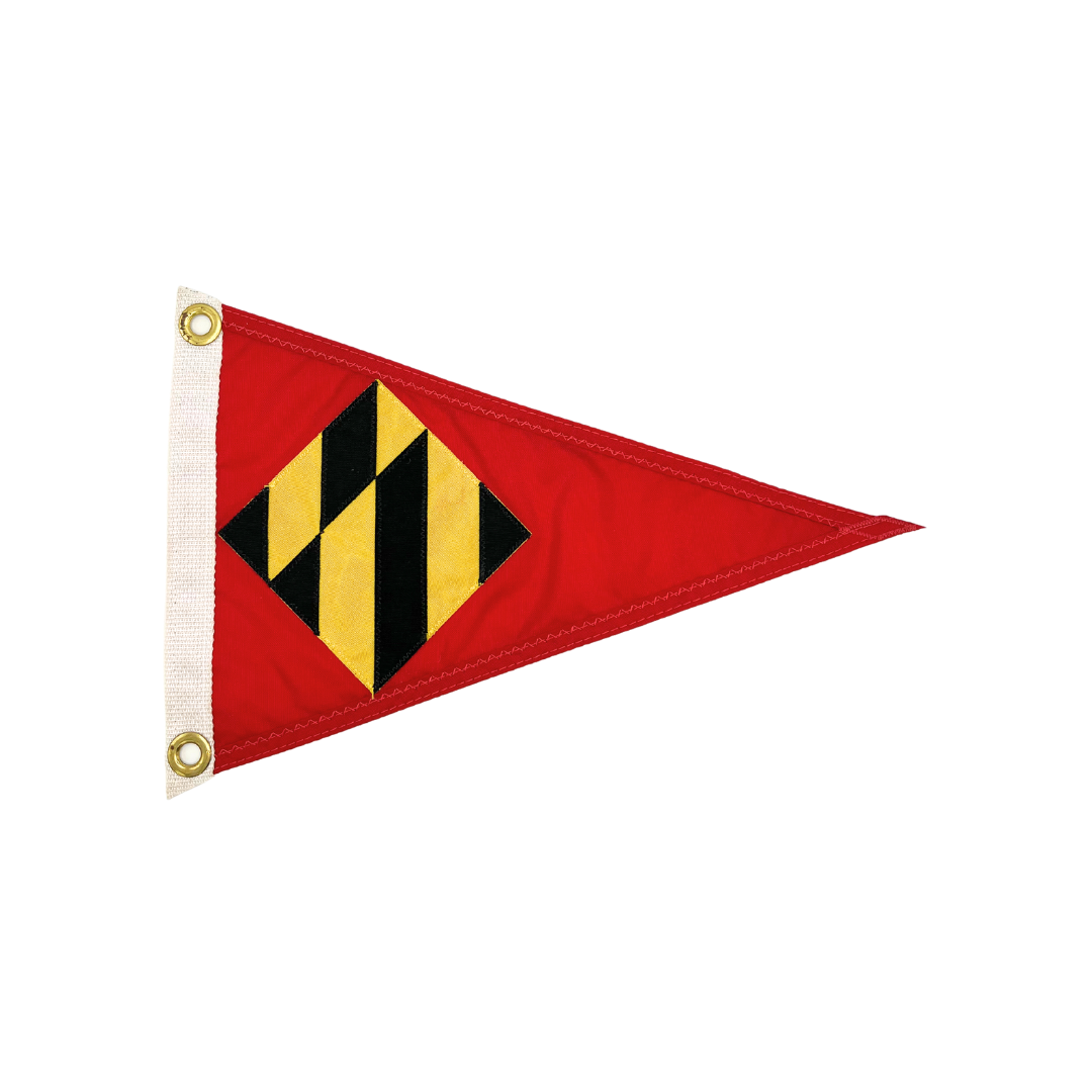 Vintage nylon Annapolis yacht club burgee. Brass rivets and stitched motif. Slight wear, overall good condition. Flag is 15.5" long.