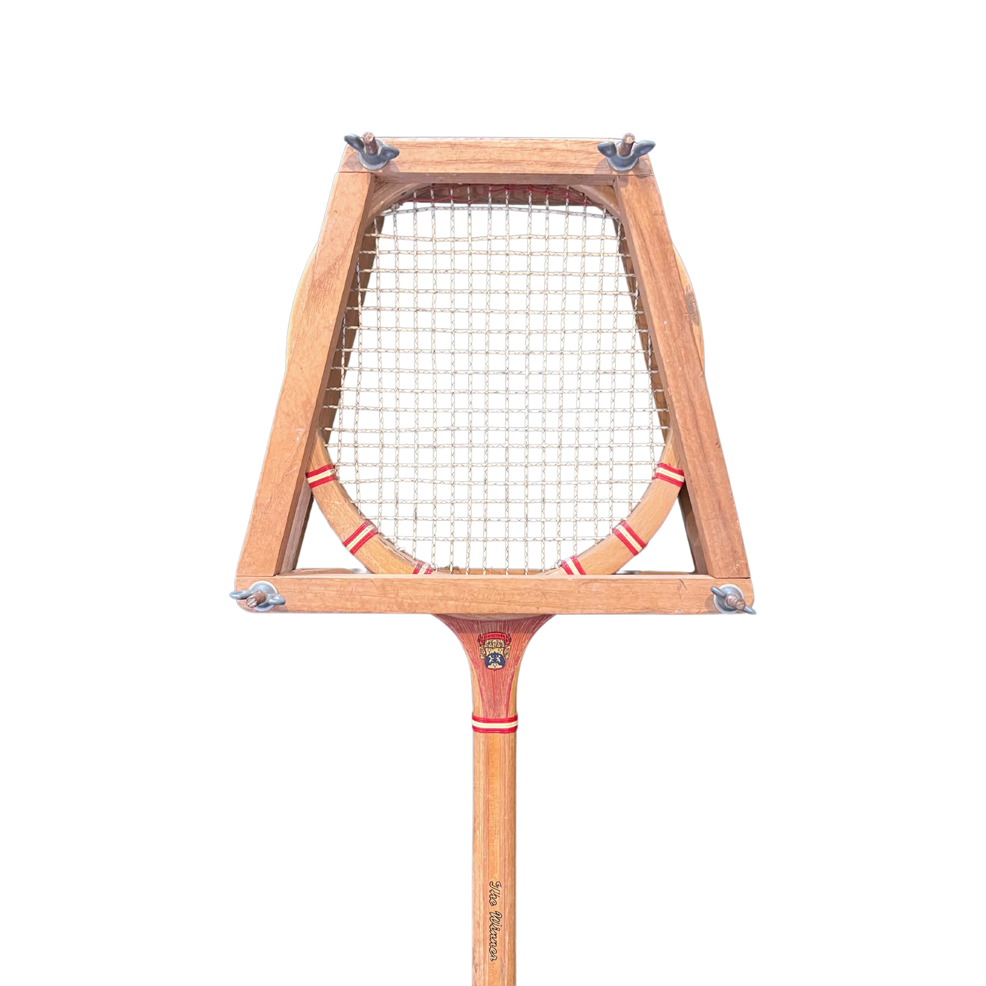Collectible 1950s wooden Bancroft Winner racquet. Comes with wooden press. Great condition for its age. Smaller racquet head - may have been used for badminton or squash. 26.5" long x 10" wide including wooden cover/press.