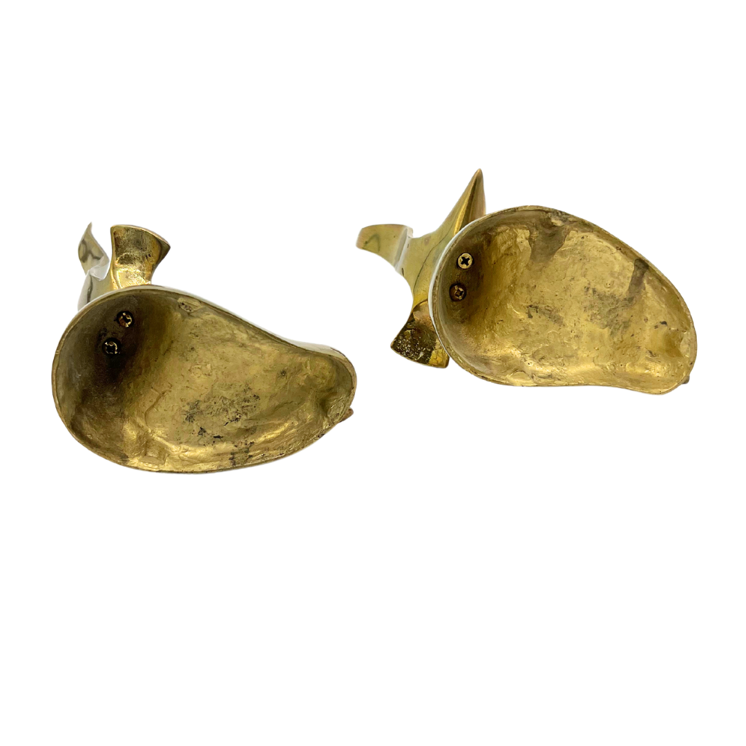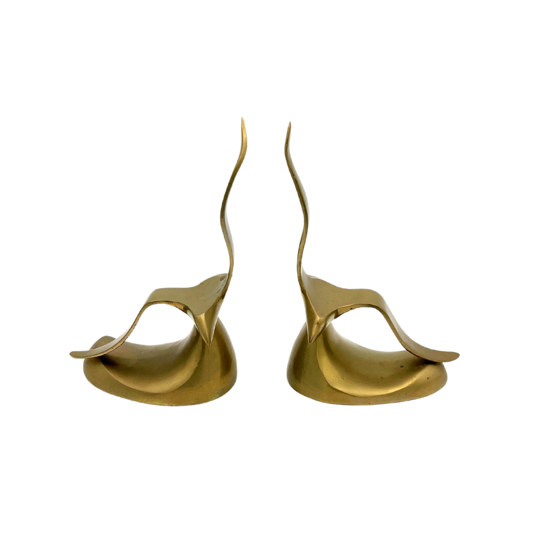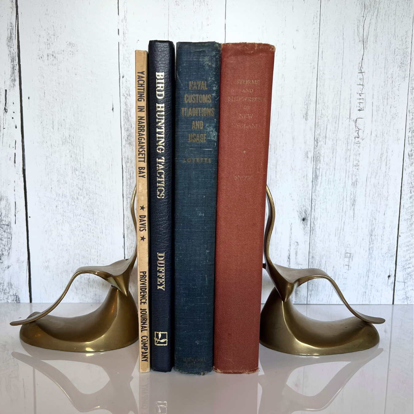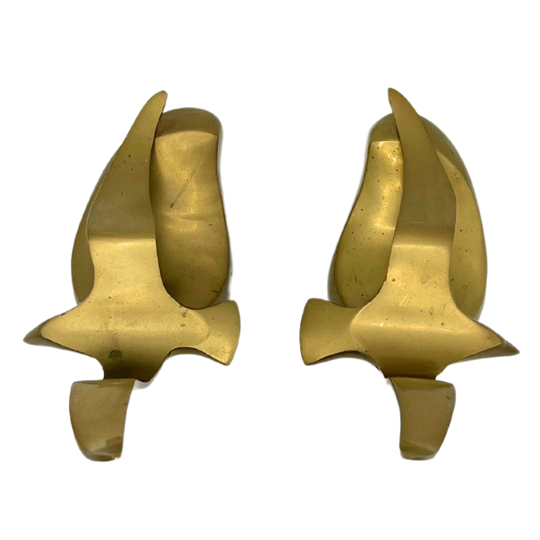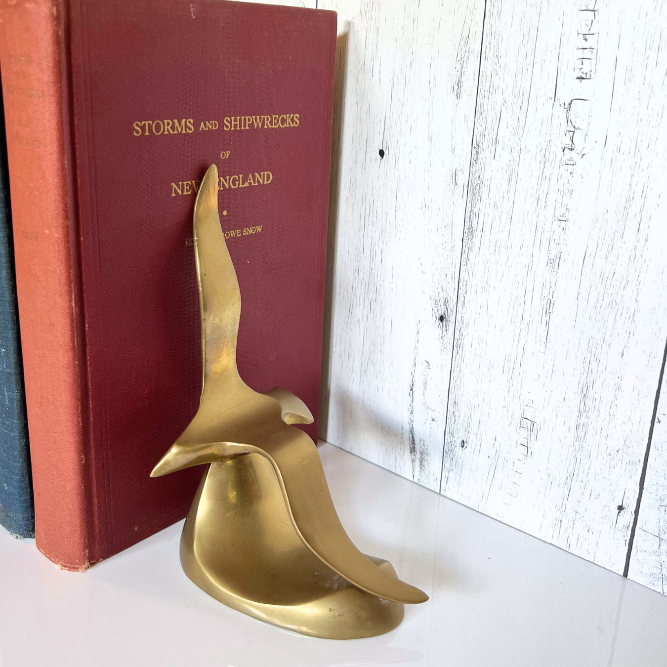 Pair of vintage brass gull bookends. Estimated 1970s. Good vintage condition, slight patina. Each gull stands 6.75" tall.