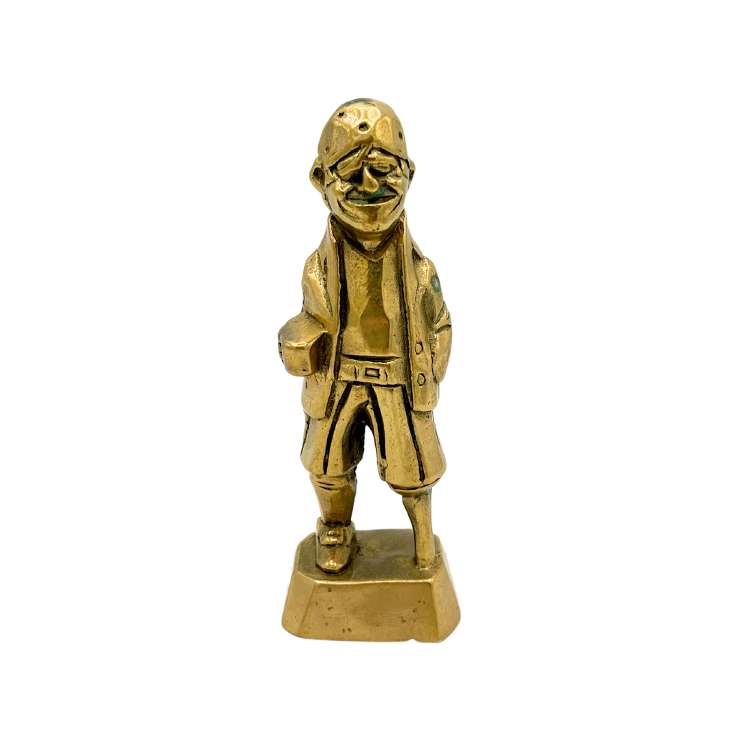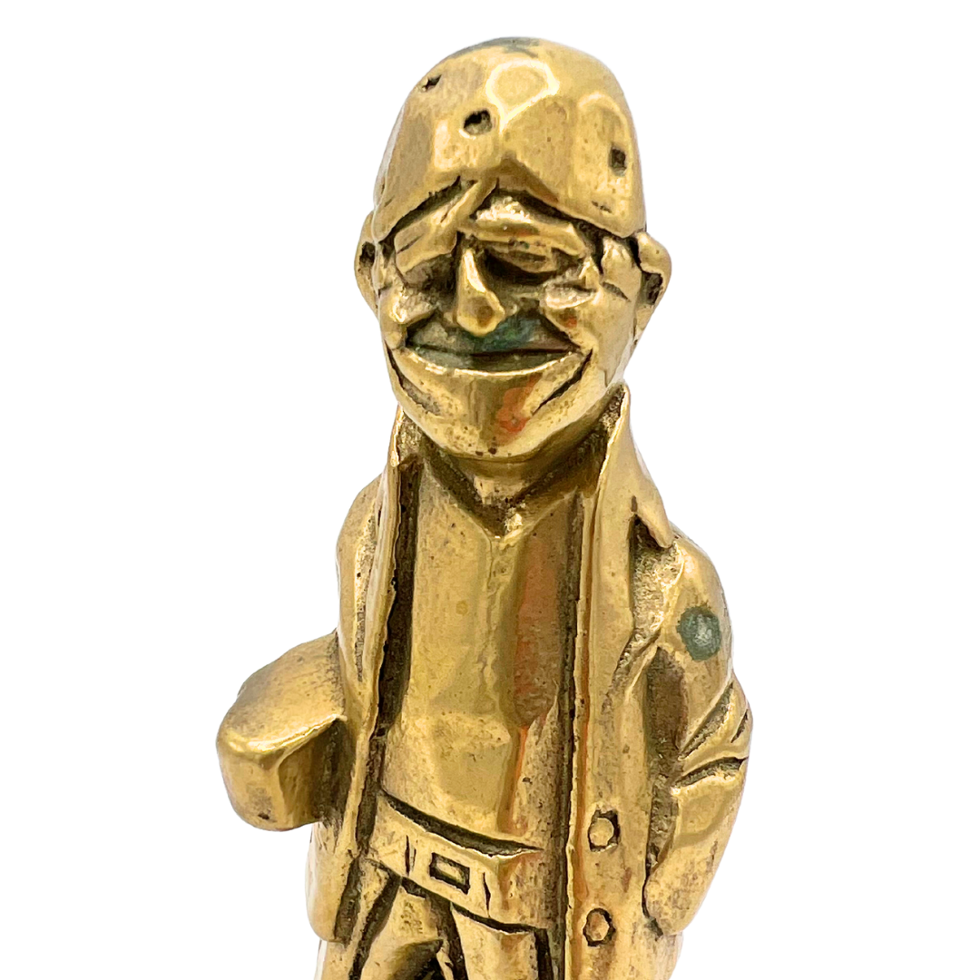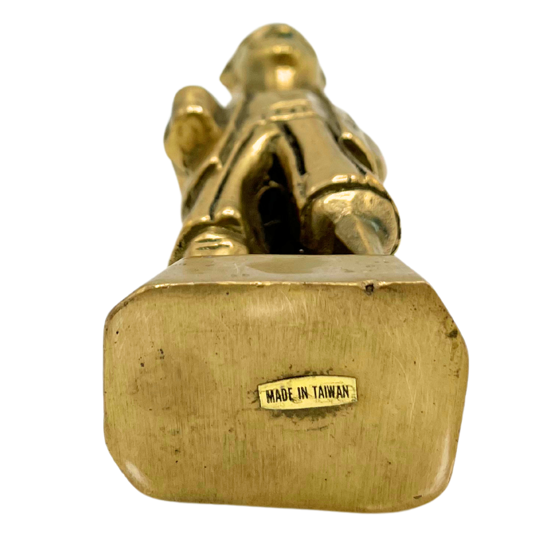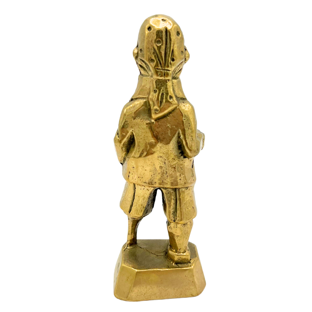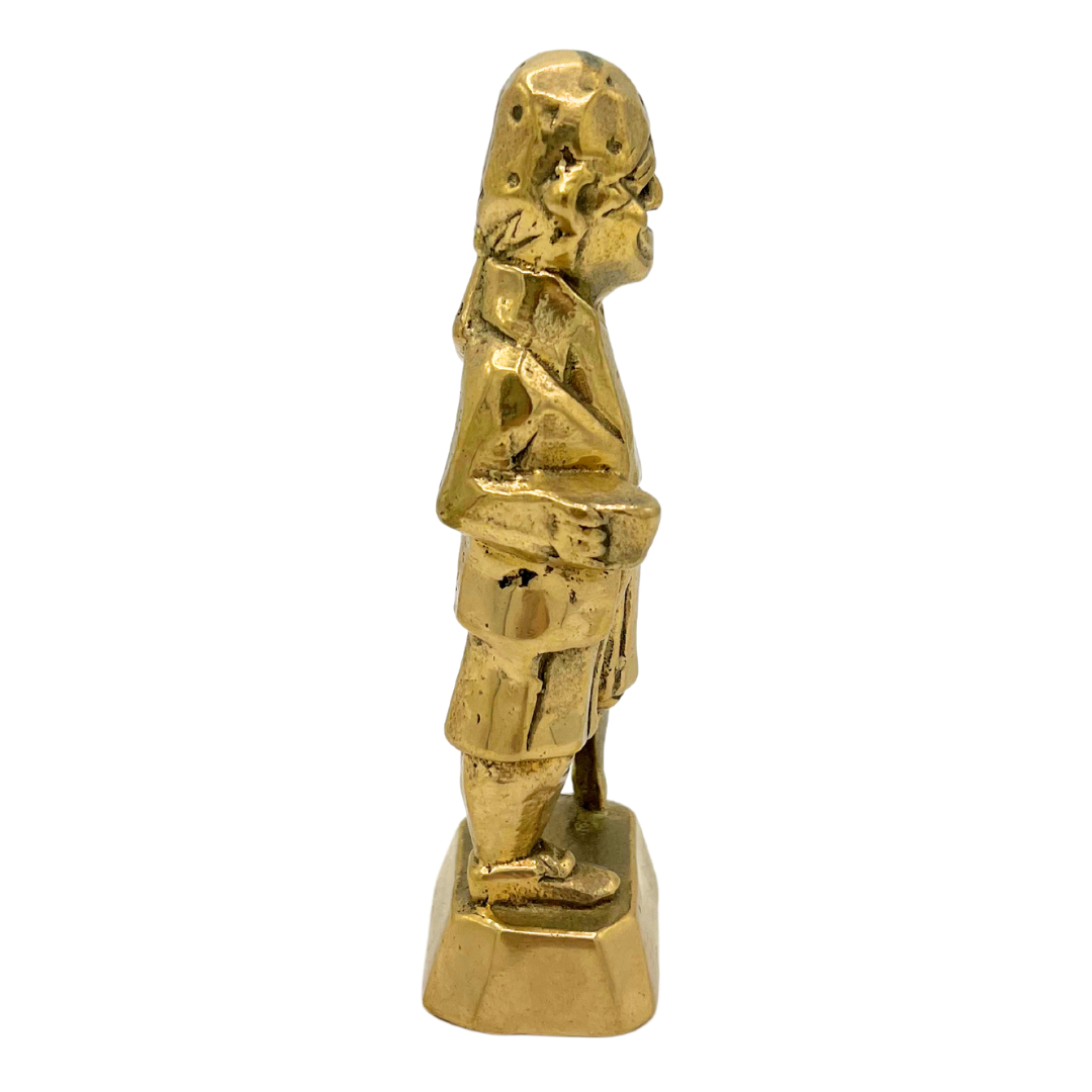 Vintage brass pirate. Estimated 1970s. Some spots of patina consistent with age. Made in Taiwan. Heavy and solid - almost 2 lbs. Stands 6.25" tall.