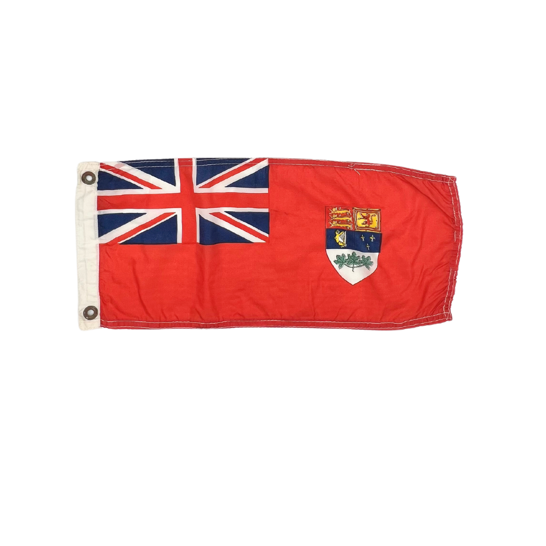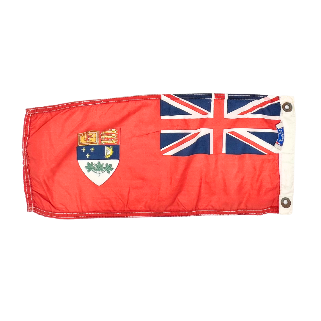 Vintage Canadian WWII naval flag. Nylon flag with some weathering and patina on rivets. Estimated 1980s or earlier. Approximately 19.5" x 8.5".