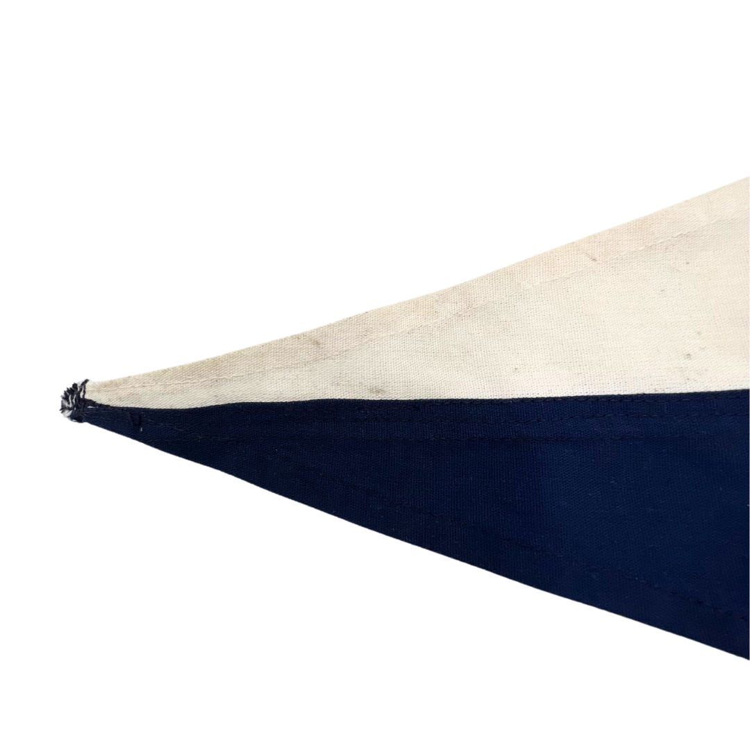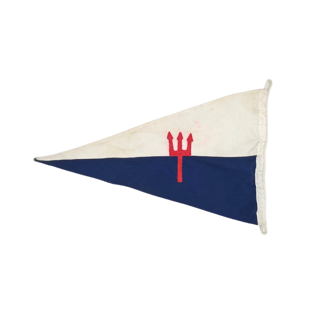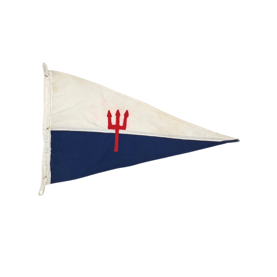 Vintage cotton burgee/nautical flag. Nylon cord, stitched emblem. Association unknown. Slight wear and color bleeding. Approximately 22" long.