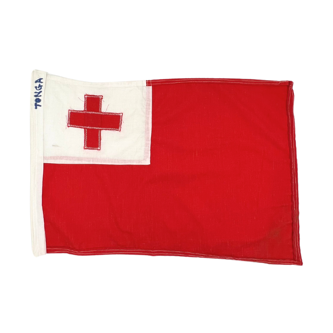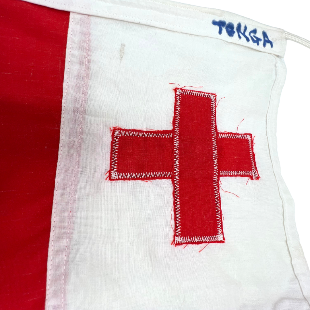 Vintage cotton Tonga courtesy flag. Handwriting on edge noting location. Minimal signs of wear. Approximately 21" x 14".