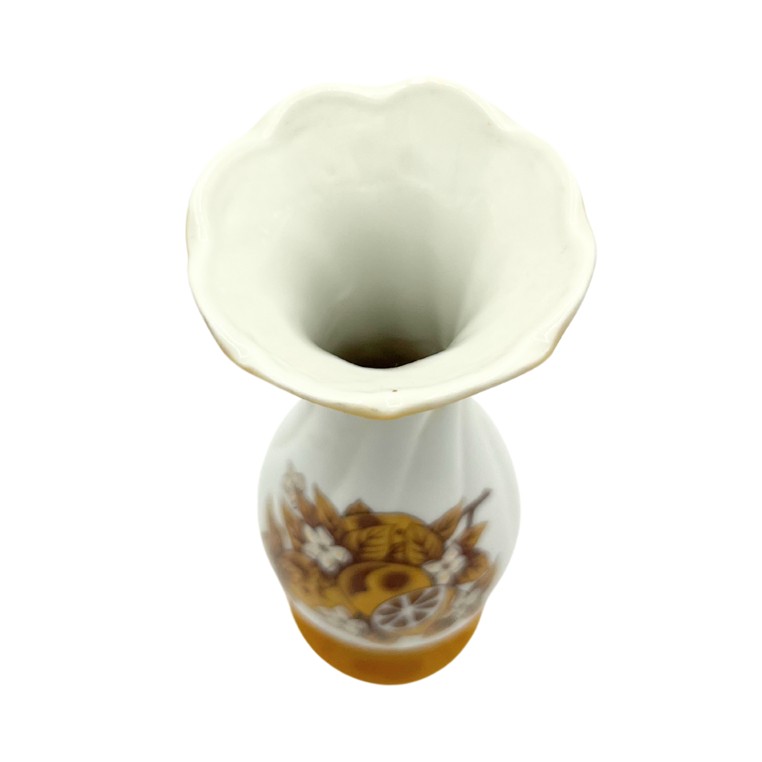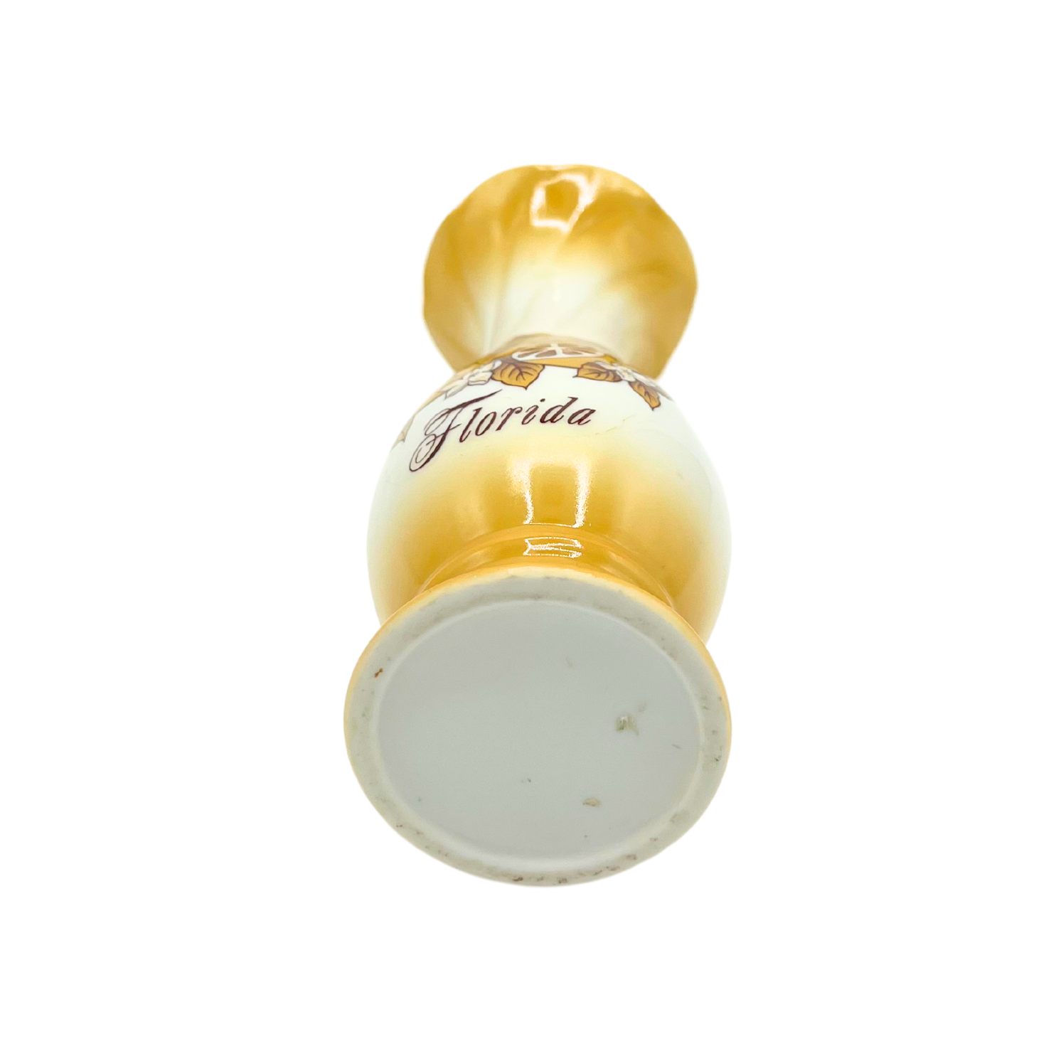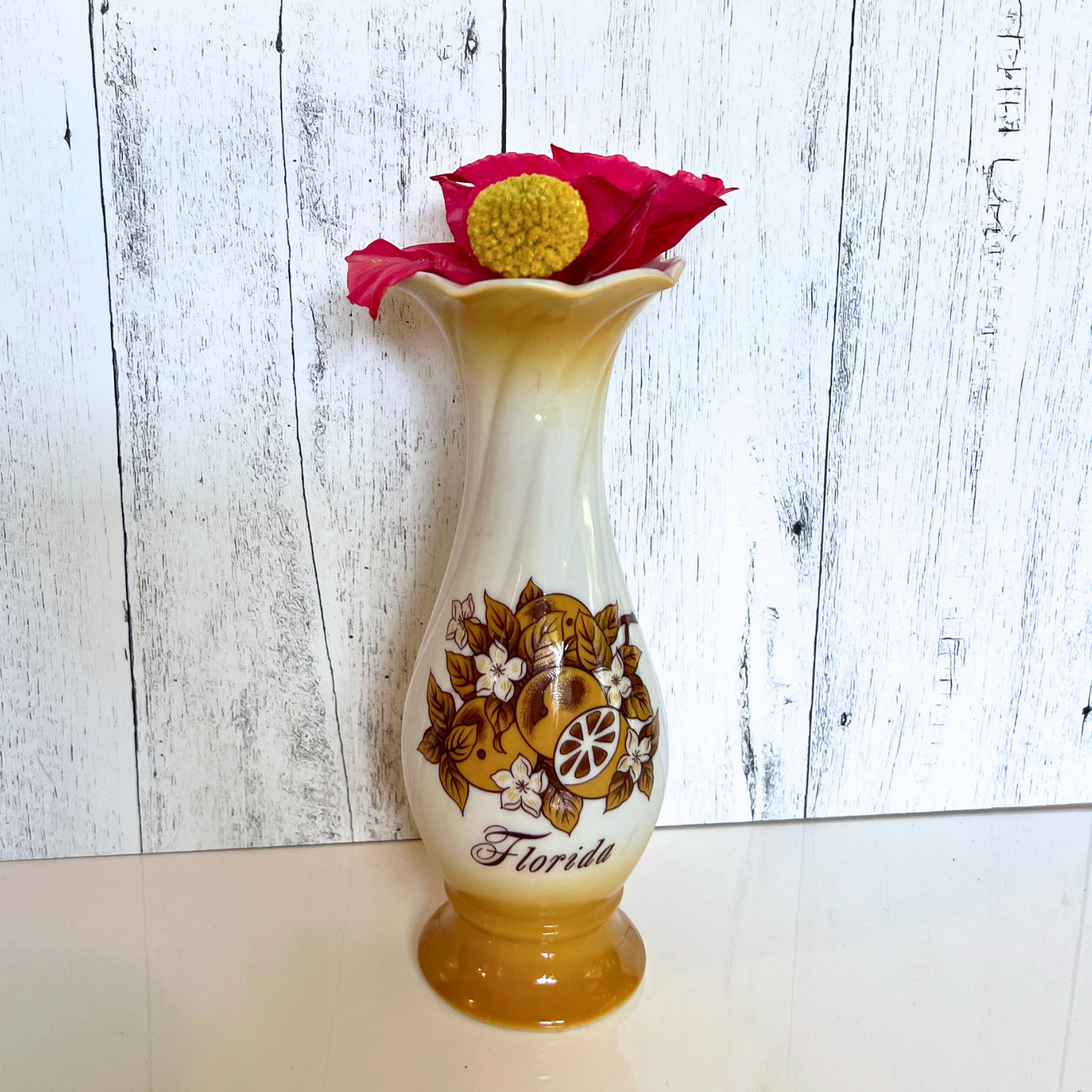 Vintage Florida vase. Estimated 1970s. Floral and fruit motif. Stands 7.25" tall.