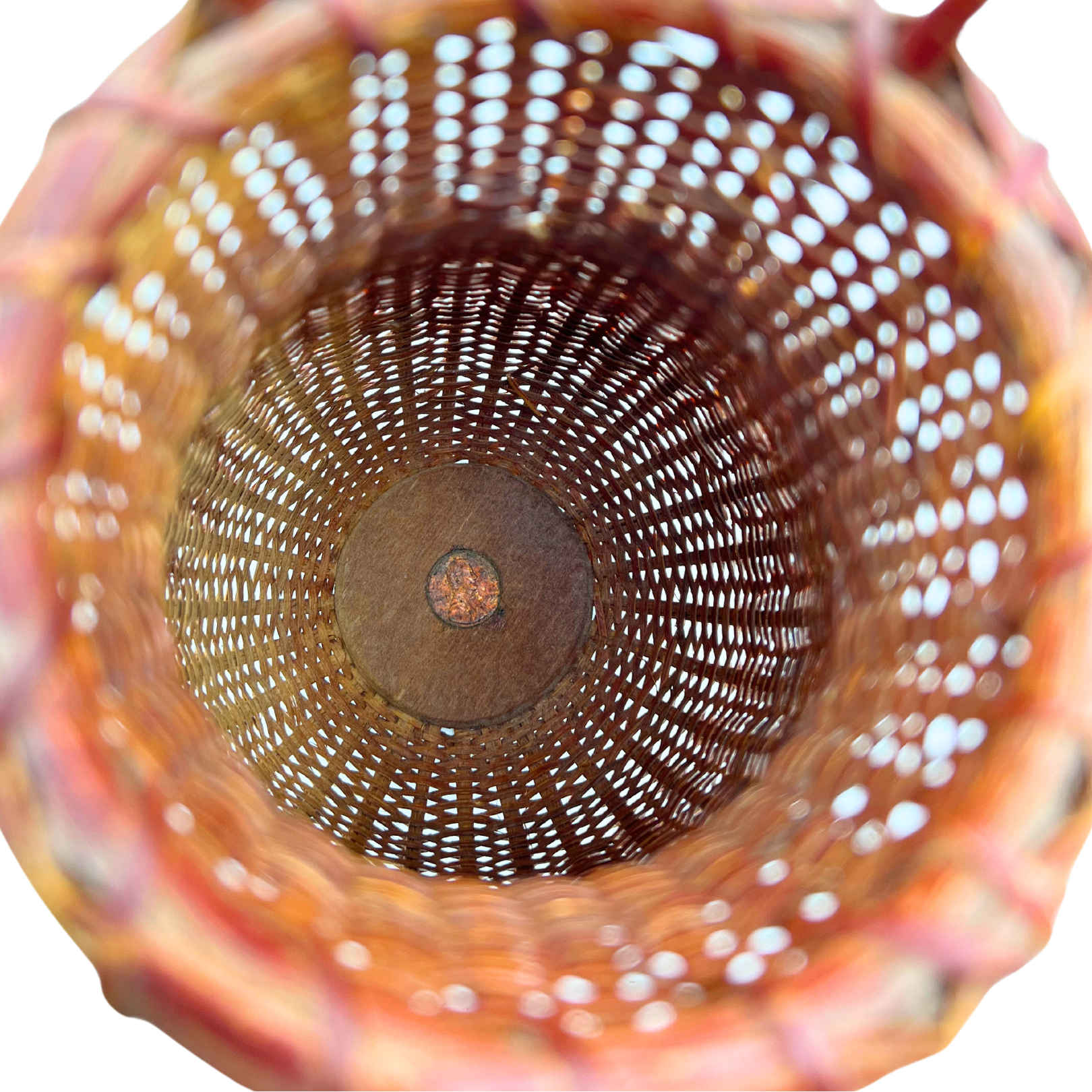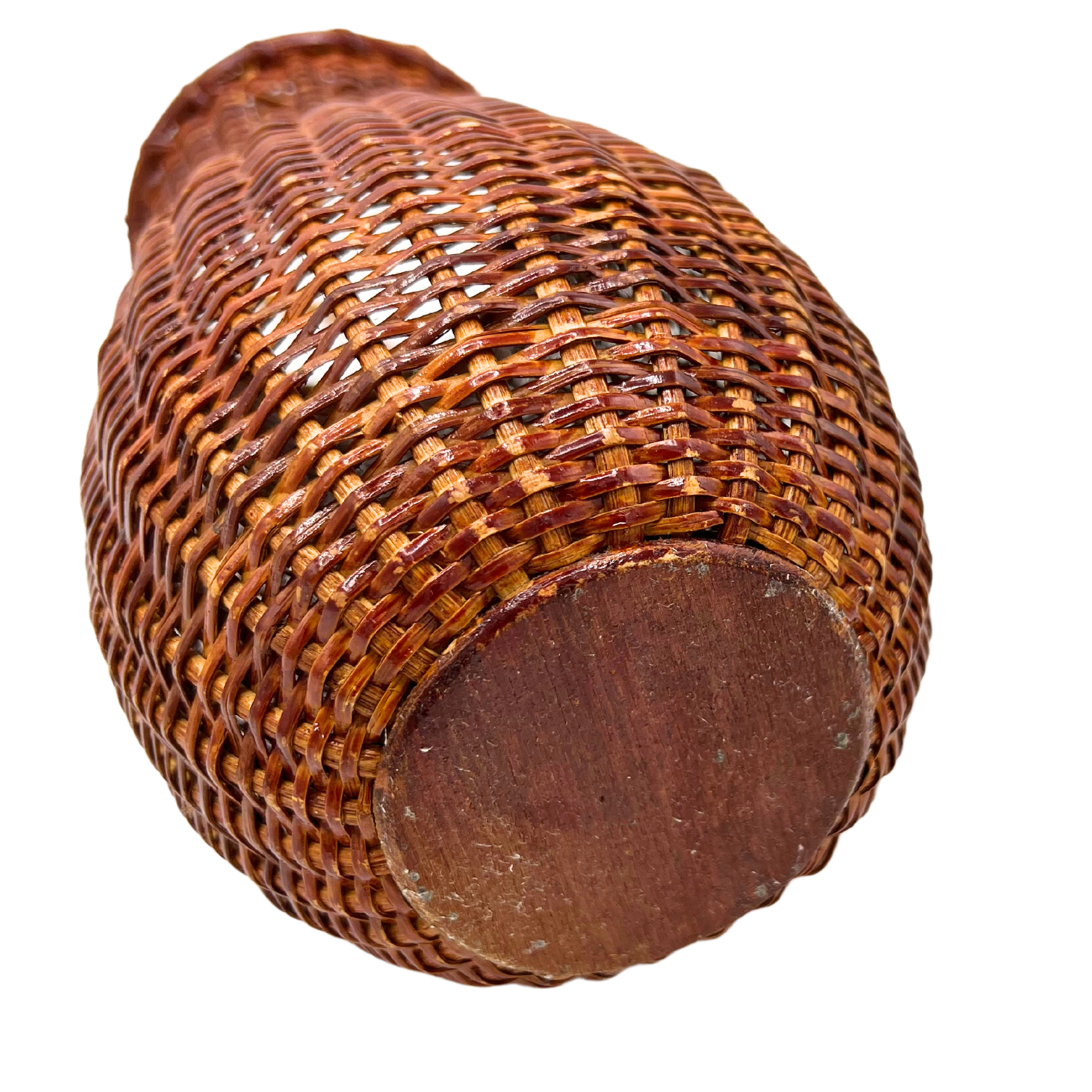 Vintage Nantucket vase/basket. Can be hung on a wall. Authenticity and origin unknown. Classic Nantucket basket penny at bottom of vase. Some wear consistent with age. 13.5" tall.