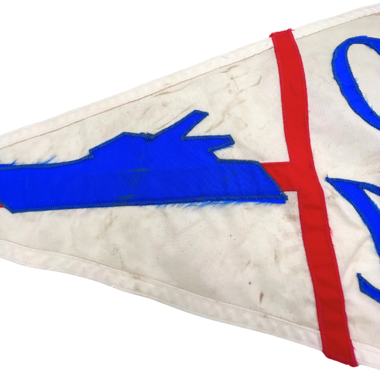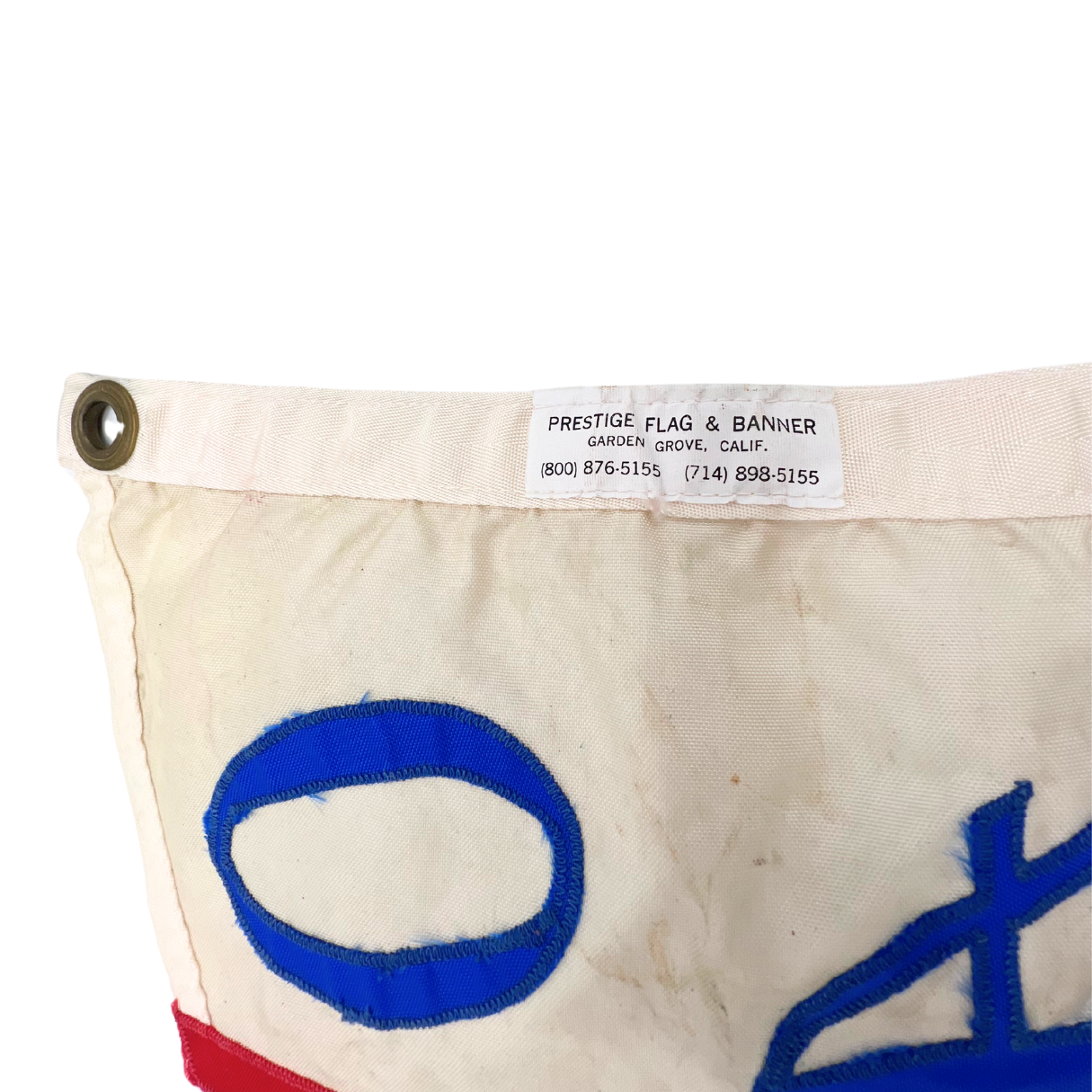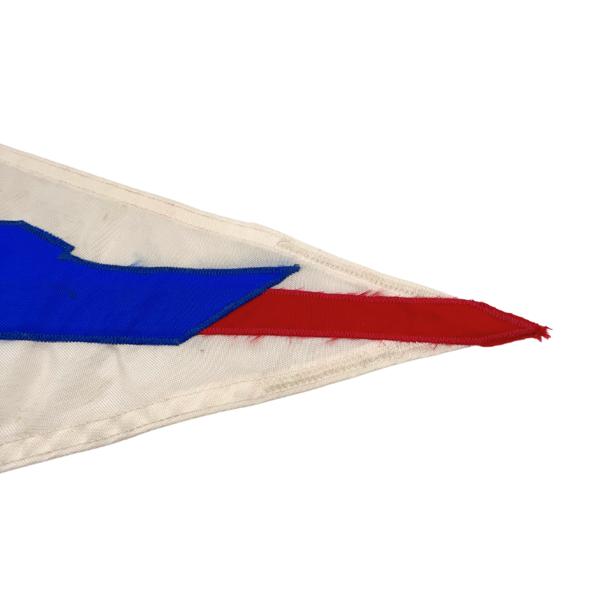 Vintage nylon Ocean Alexander burgee with embroidered motif. Brass rivets with slight patina. Light weathering but overall good vintage condition with vibrant colors. Approximately 20" long.