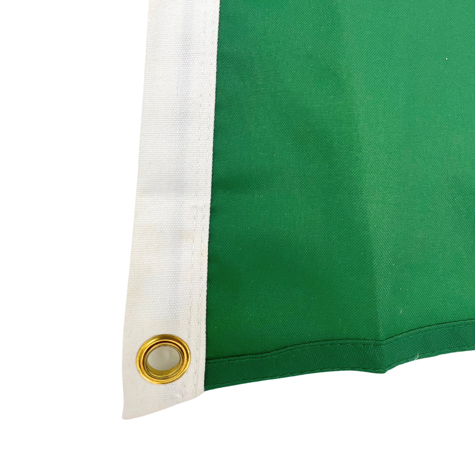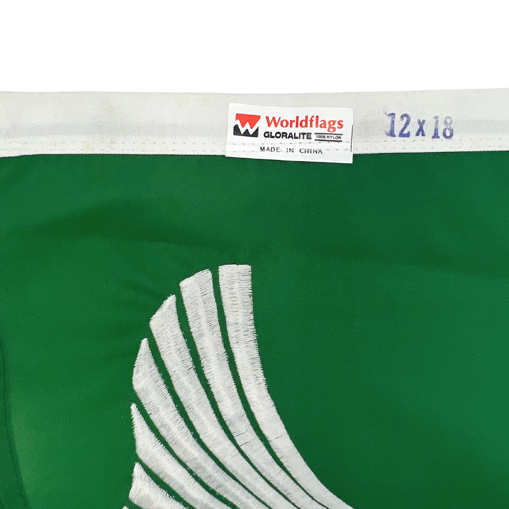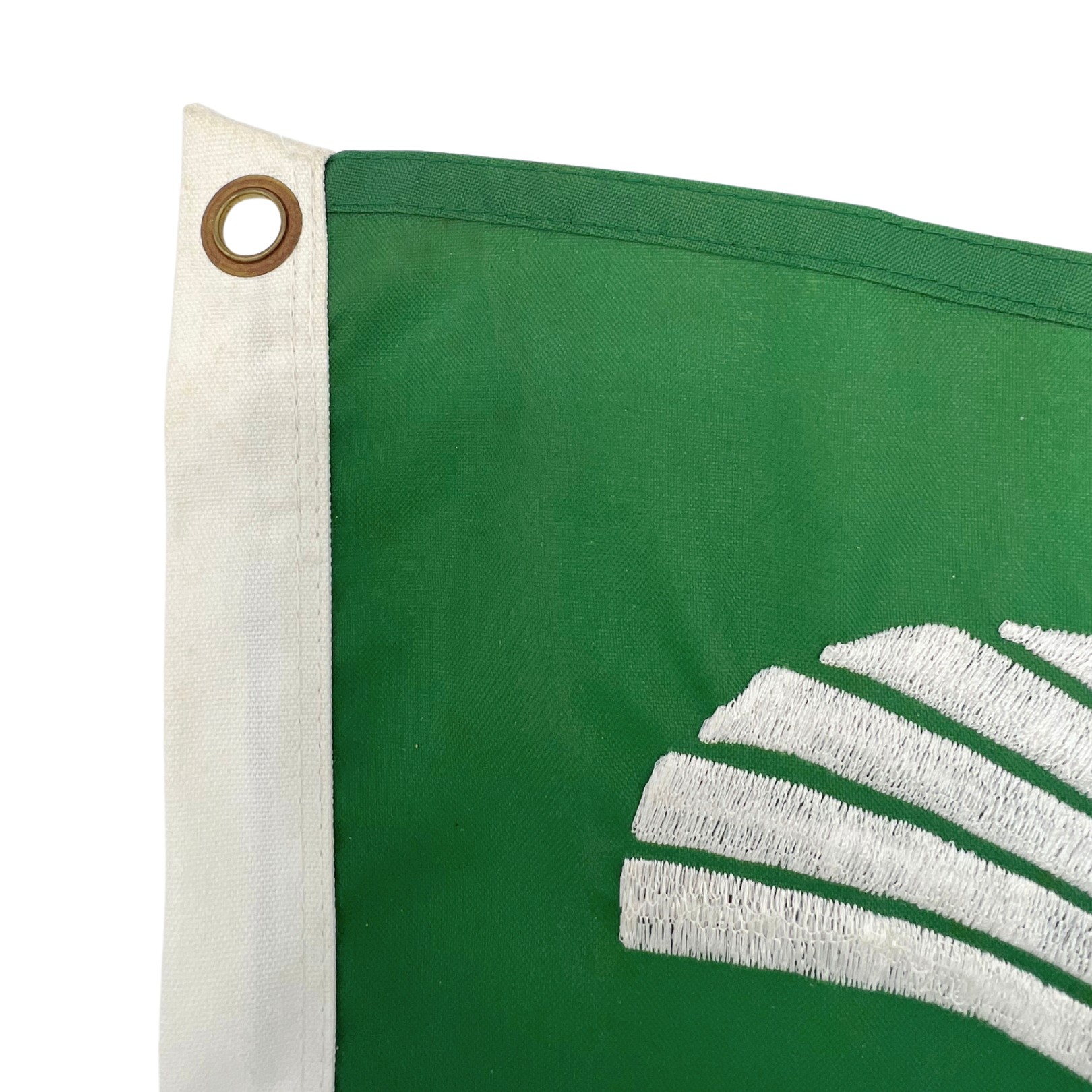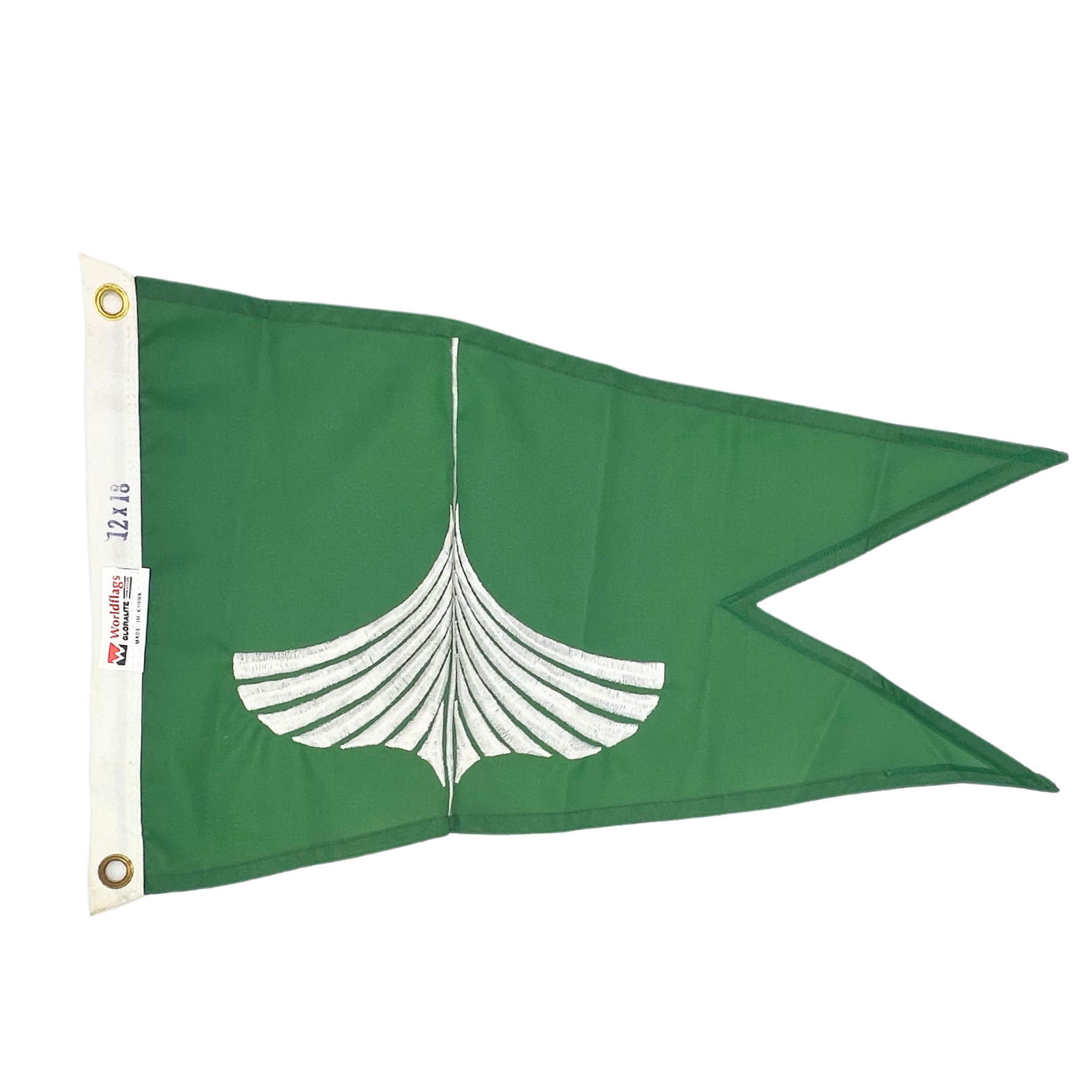 Green burgee with WoodenBoat logo. Unused condition. Embroidered motif. Approximately 19" long.